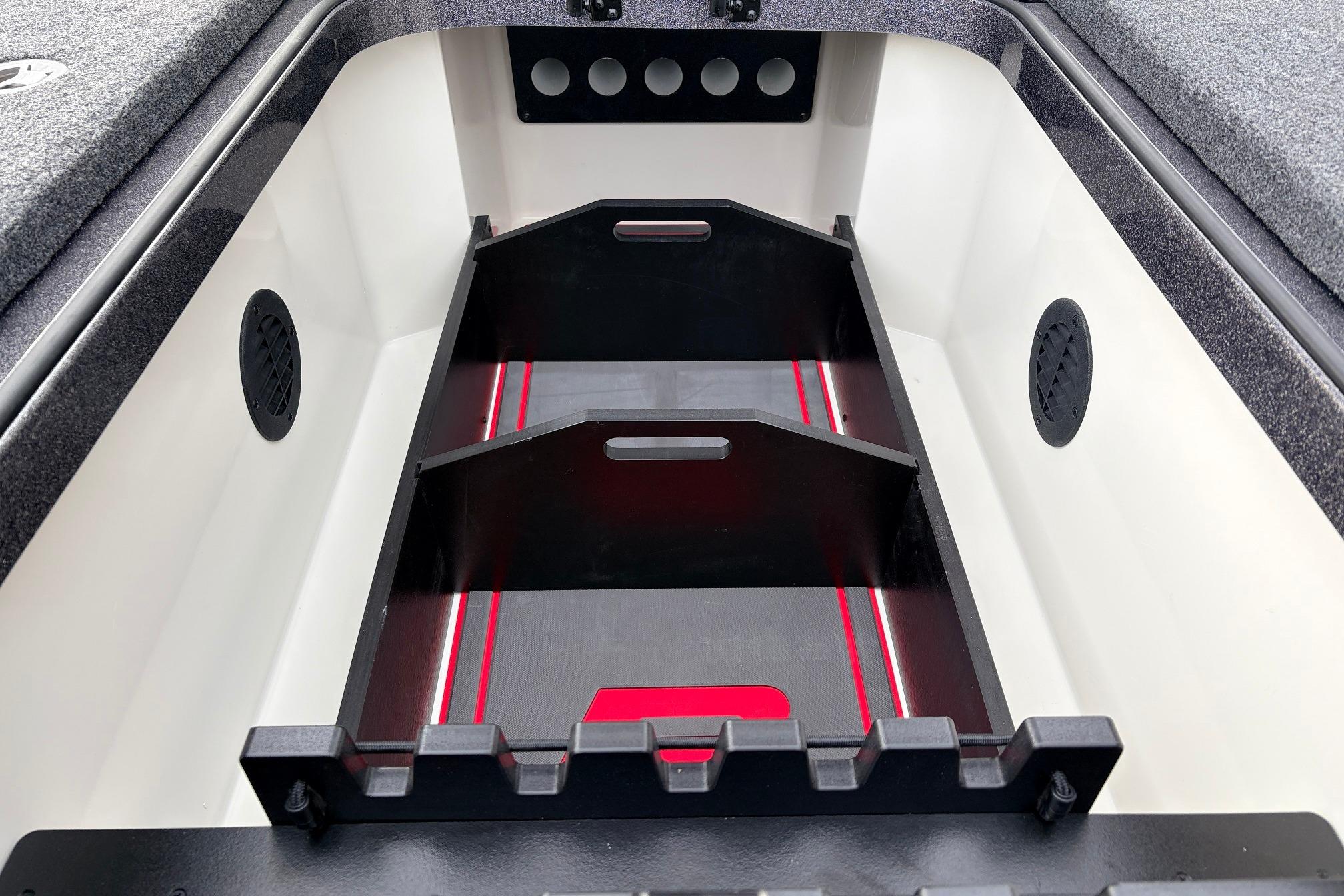 The Ranger Cup-Equipped package adds pro-selected options that let you hit the most daunting tournament trails with even more competitive advantage. Standard with factory-installed 12" graphs from Lowrance or GARMIN, the latest in forward-facing sonar technology, and a host of our most popular equipment from the Z521R options list, the Z521R Cup-Equipped package packs-on incredible value to the most hardcore tournament-ready machine on the water. For 2025 weve upped the ante even more by adding a host of top-tier touches to set apart this premium rig even more. New heated Cloud 9 air ride SRS driver seating carries you in comfort, while a new non-skid traction pad graces the front deck for stylish functionality. Protecting your investment is a newly redesigned boat cover for even greater fit and security. Fishability gets an upgrade with a Minn Kota Quest 115-pound thrust trolling motor and an optional dual BBT electronics mount keeps your graphs secure and easy to read in all conditions. Finally, a color-matched cockpit floor, push-to close latches, and compartment liner mats complement the peerless style of the Z521R Ranger Cup-Equipped. From bow to stern, hull to top cap, the Z521R has been tweaked, massaged, enhanced, and perfected across every inch with a passion for perfection. No element of the boats design, performance, quality, safety, or fishability was untouched as we crafted this next-generation legend. The culmination of this work has yielded an all-new boat with revamped and elevated all-around performance that melds with aggressive modern styling that sets this rig apart as the apex of bass boats. Real-world improvements include a perfected hull that delivers rapid lift onto plane and a stronger top end. Weve also elevated the technology that comes standard on the Z521R. The Ranger R.I.D.E. system lets you monitor and control every critical function while a key fob permits quicker start up and enhanced security when youre not nearby. The Z521R also features an industry-first push-to-start system that gets you to the next spot fast. Deep within the Z521R is a reimagined core and stringer system that not only bolsters our One-Piece Feel Interloc construction but permits larger storage boxes for even more space. The rod boxes feature an all-new Echelon tiered shelf system for unmatched customization, flexibility, and capacity and the ability to hole sticks up to 9. Every box features an automatic light sensor that cuts on LEDs when a lid is lifted. A larger day box and massive 40qt. cooler feature the same construction as todays premium coolers for all-day-long ice. The Z521R carries more advancements in performance, technology, fishability, and style that not only set it apart from the crowd, but leads it.