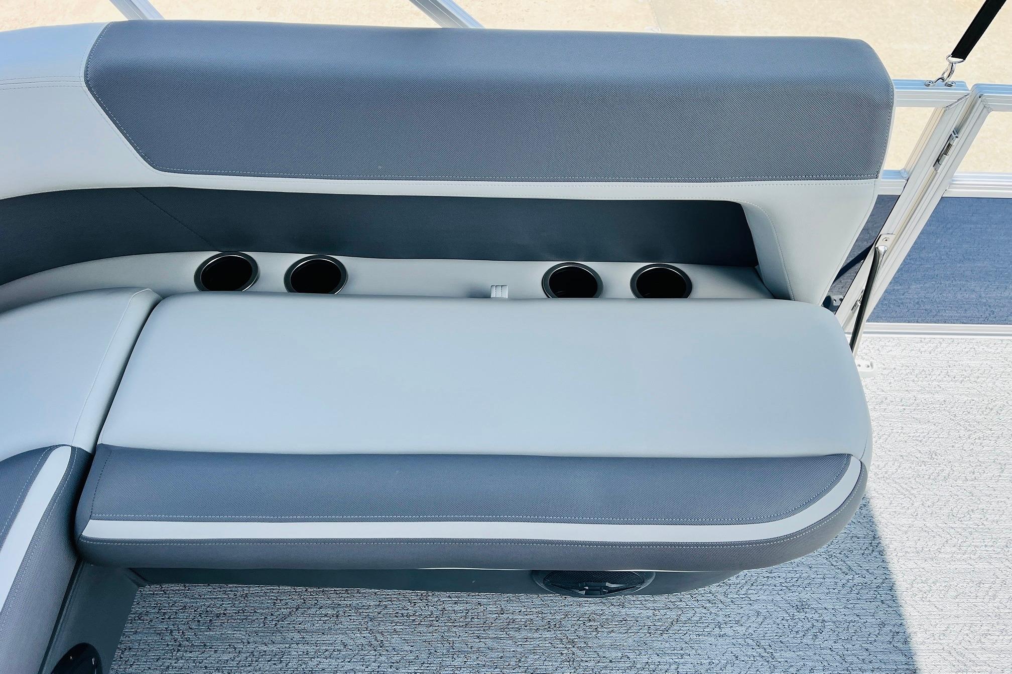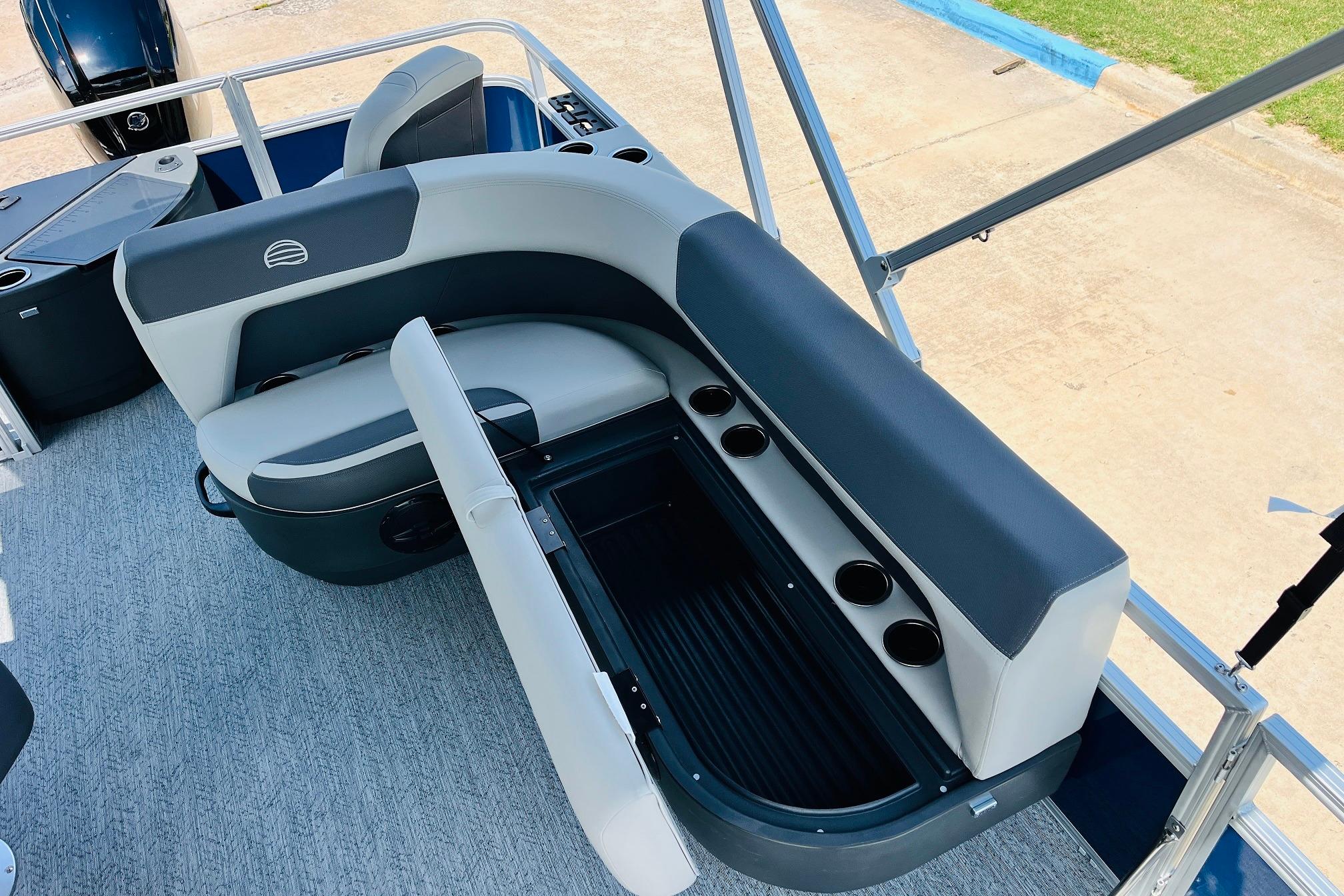 Up to eight fishin' buddies can take to the dual fishing decks of this redesigned fishin' pontoon. Three swiveling fishing chairs around a 10-gal. bow livewell and an 8-gal. aft livewell headline the list of features that make this the perfect boat for casting lines to catch fish and memories. When the fishing's done, sprawl out on the L-shaped lounge and crank up the stereo. The new and improved boarding ladder makes follow-up cannonballs a breeze. Other features new to the 2026 model year include three extra cubic feet of storage space, more cupholders, in-lounge storage, and a new seat in front of the helm.From reeling in bass to exploring your favorite lake, this BASS BUGGY is built for you and your crew.