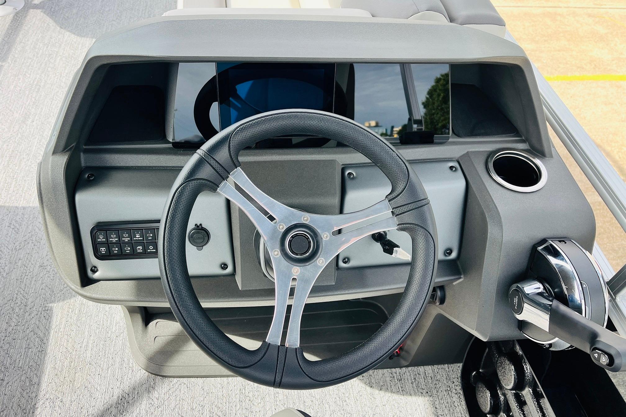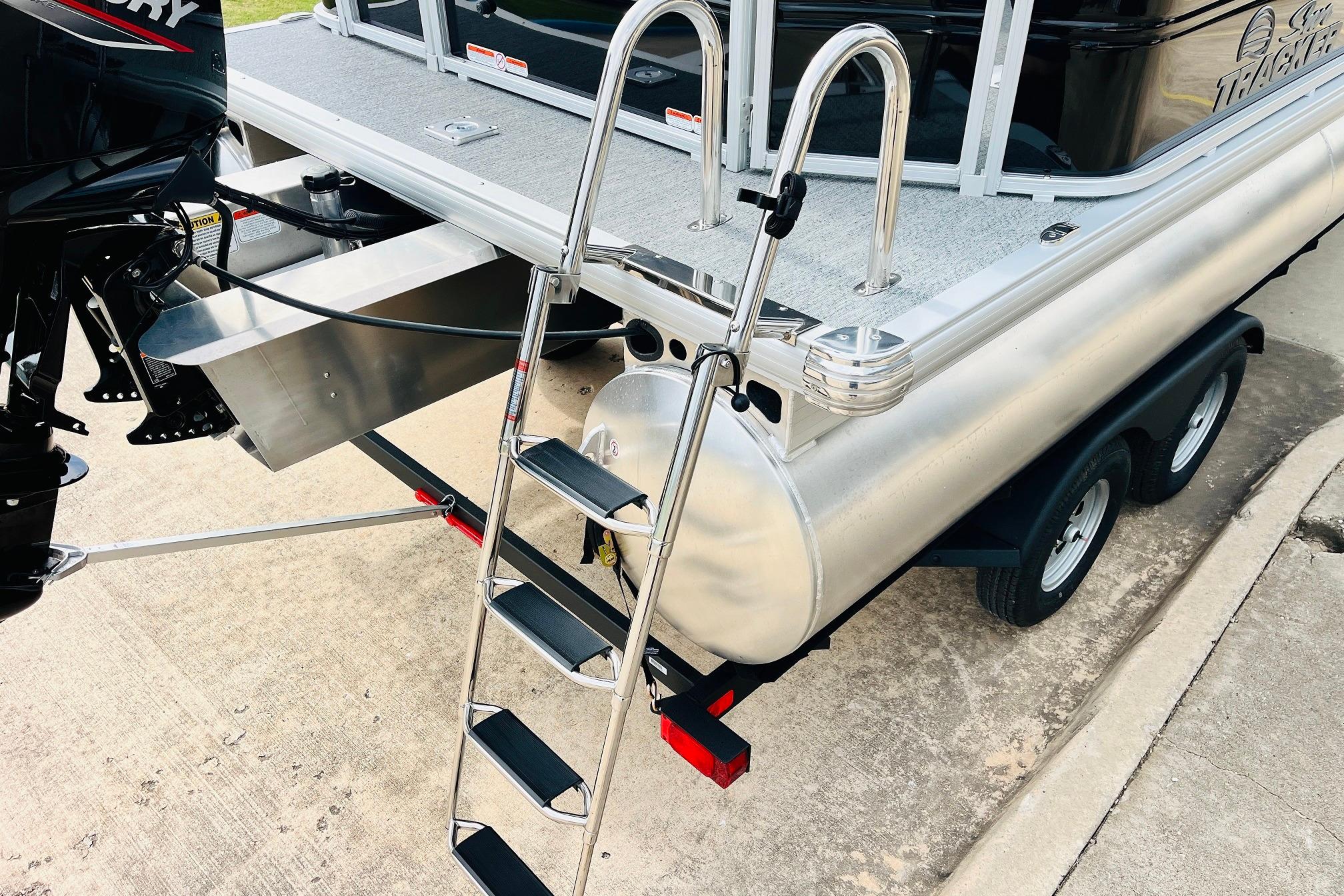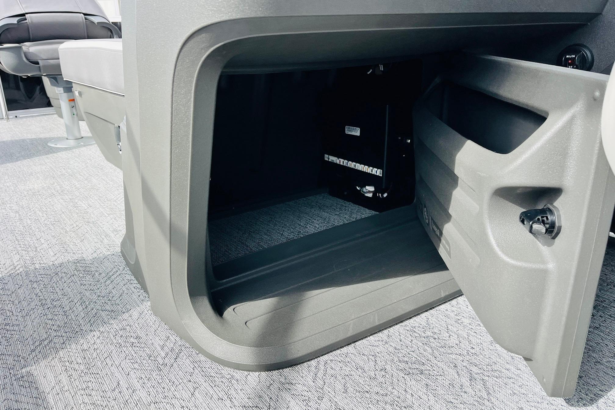 Those who are just along for the ride can relax in the 2 lounge seats with plenty of drink holders and a removable table. Those seats also boast the STOW MORE system, which secrets away storage areas under the seat cushions and seat backs. If the sun's beating down on you, put up the 9' QuickLift bimini top for some cool shade. Create a soundtrack for your trip with the standard Wet Sounds stereo with Bluetooth and 2 upholstery speakers. The wraparound fence and 3 inward swinging doors keep kids safe. The rear features a reboarding platform with a telescoping ladder with extra wide steps.