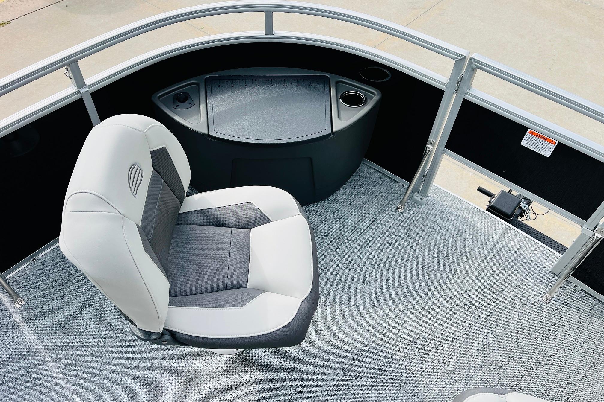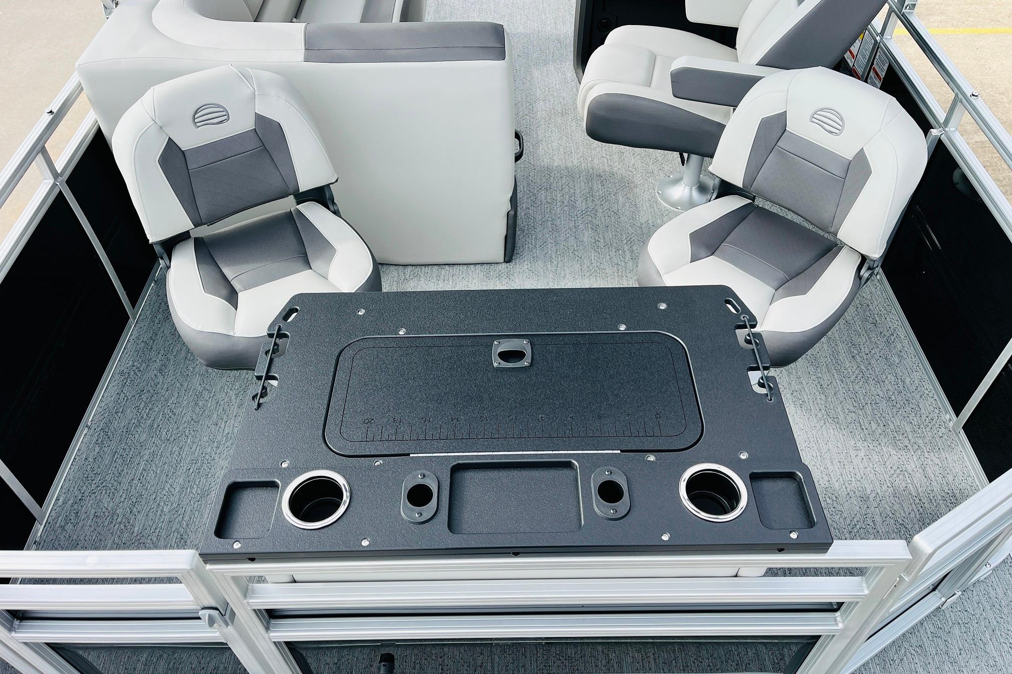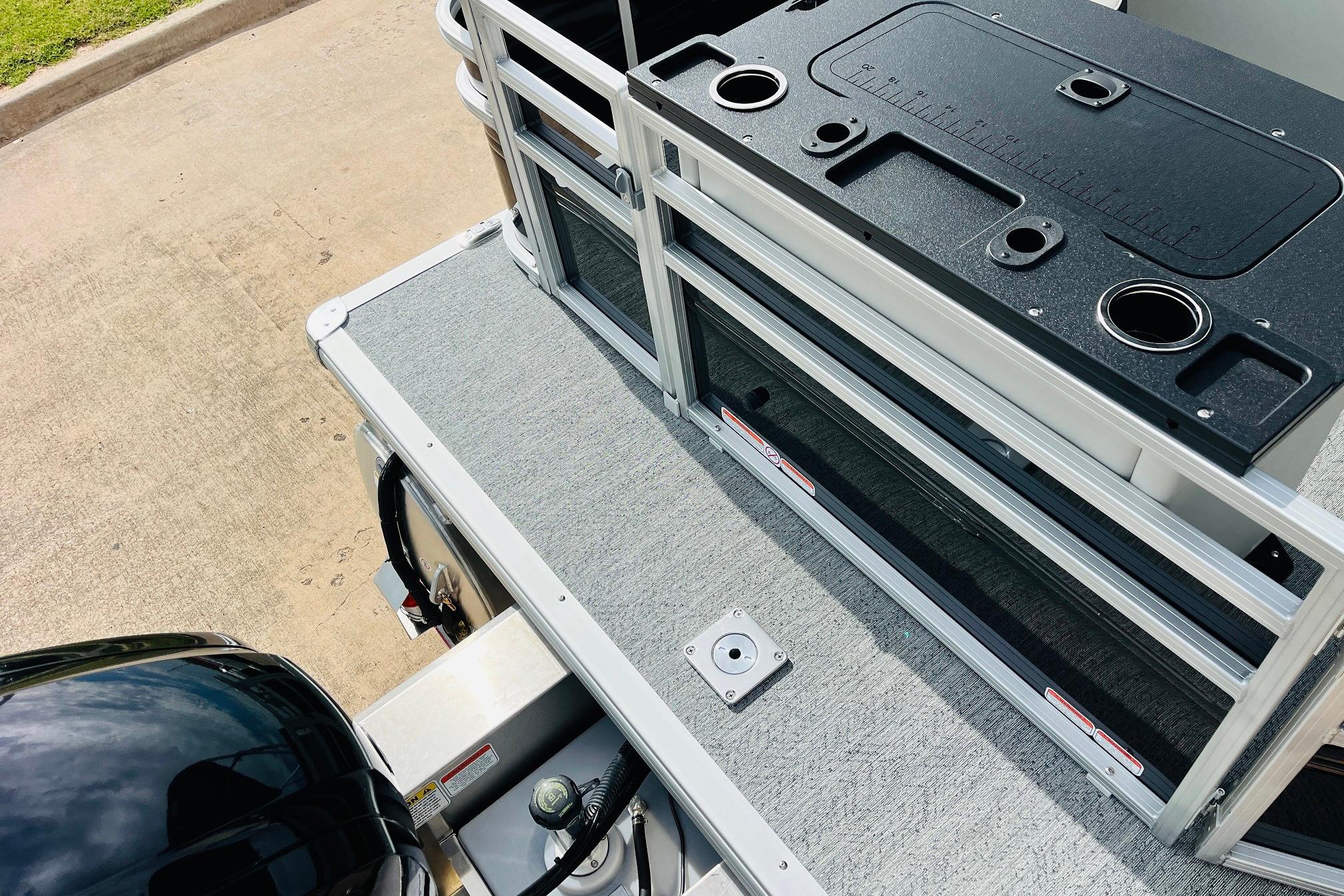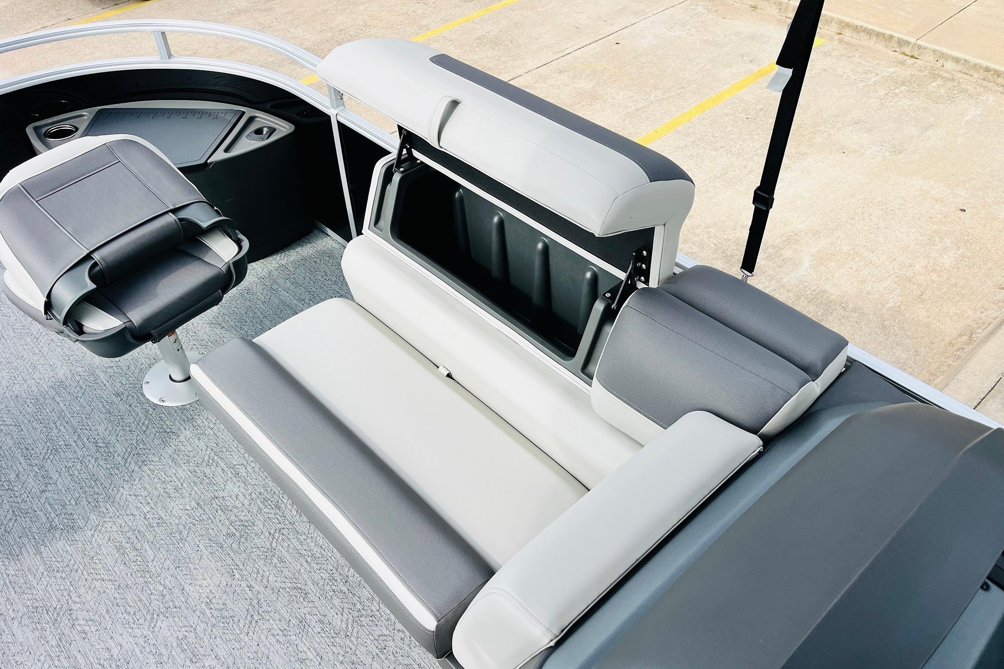 The 2026 FISHIN' BARGE 20 DLX takes fun seriously, and you will too when you're casting lines with the family from its 19' deck. Claim your favorite spot from either the fore or aft fishing decks, which boast 3 casting chairs, 2 aerated livewells, and rail-mounted holders ready to present your rods and tools. Those fishing chairs are removable and foldable to allow for deck customization. Both ends offer extra storage areas for tackle and tools.