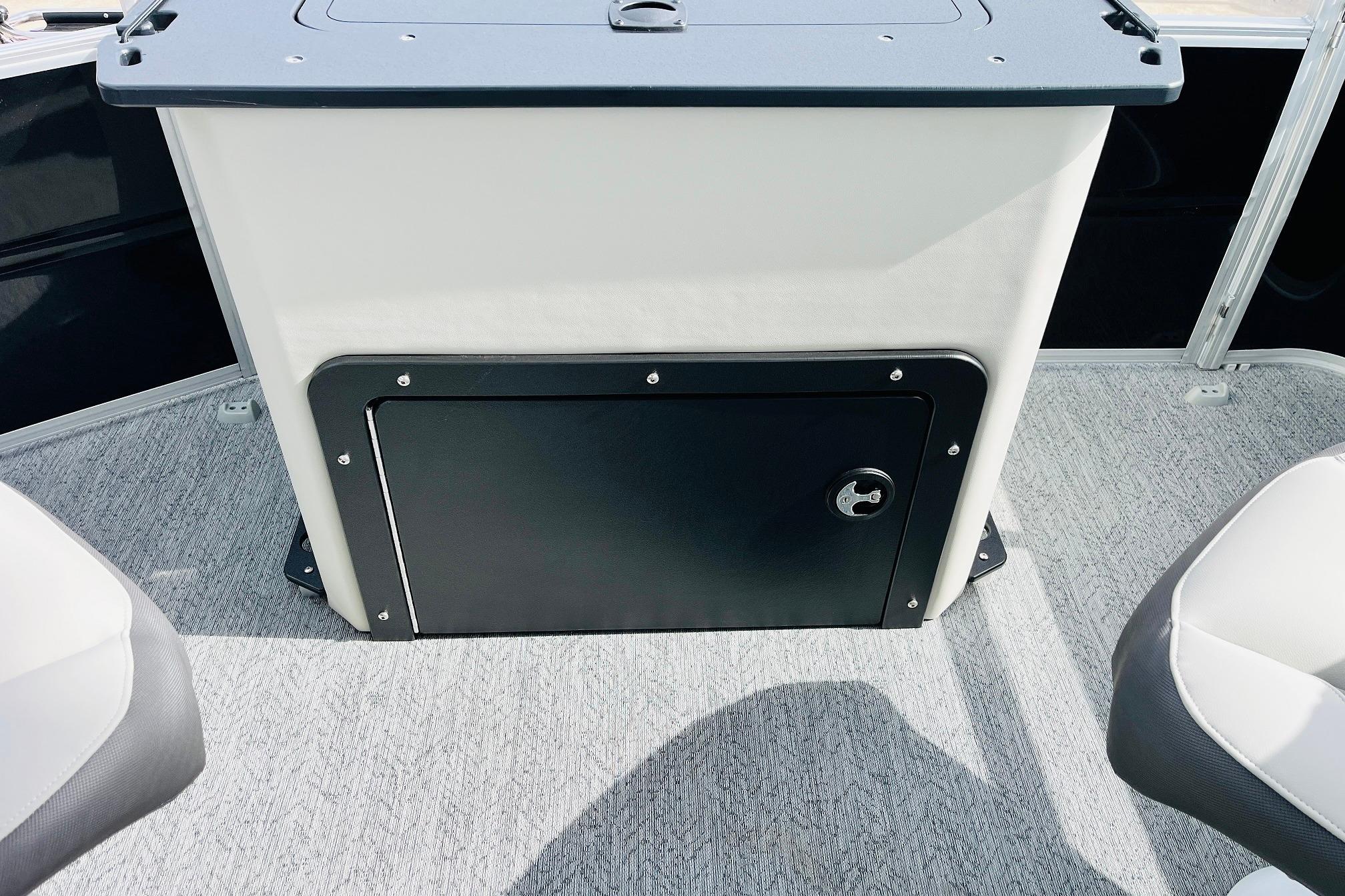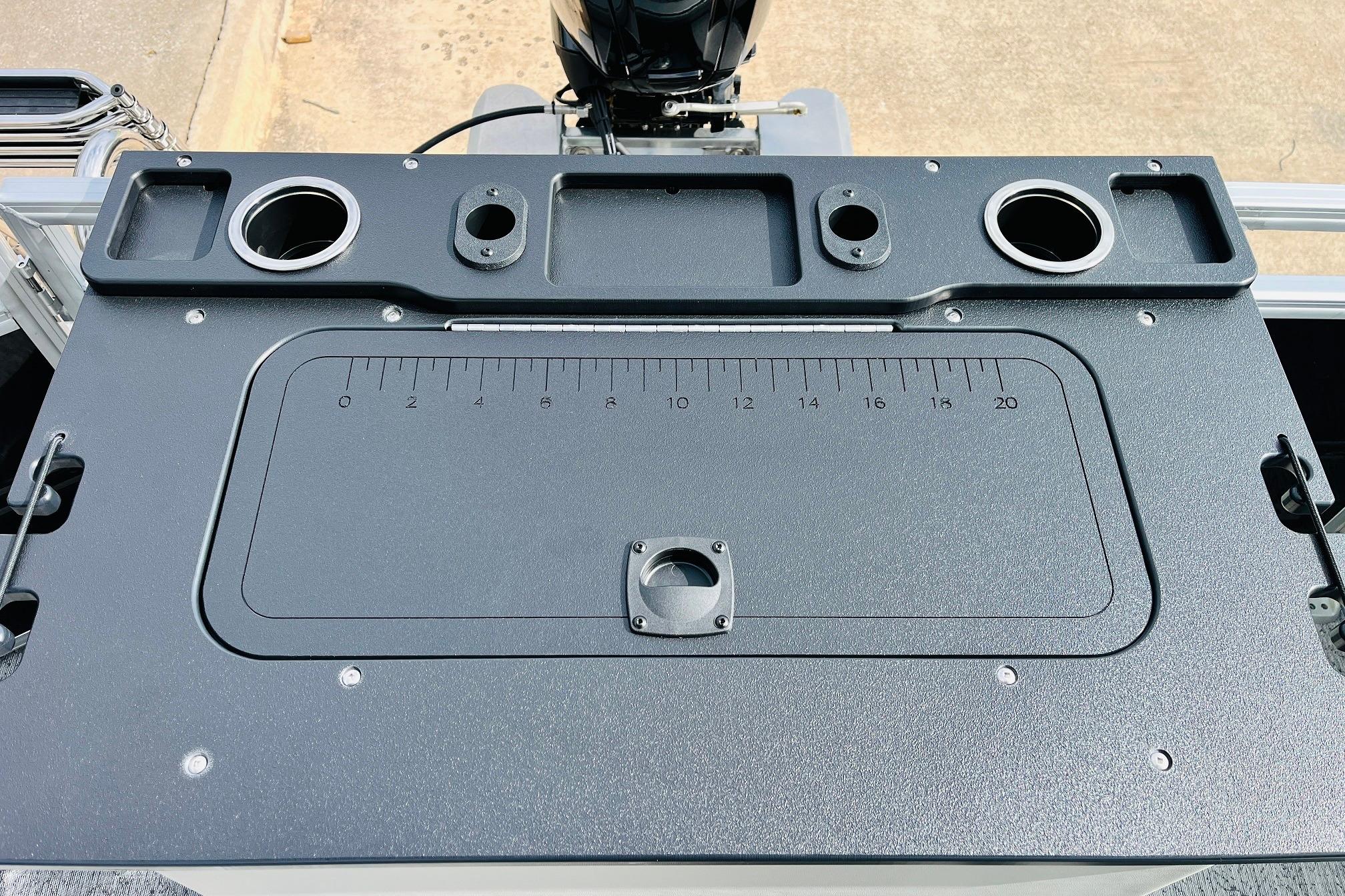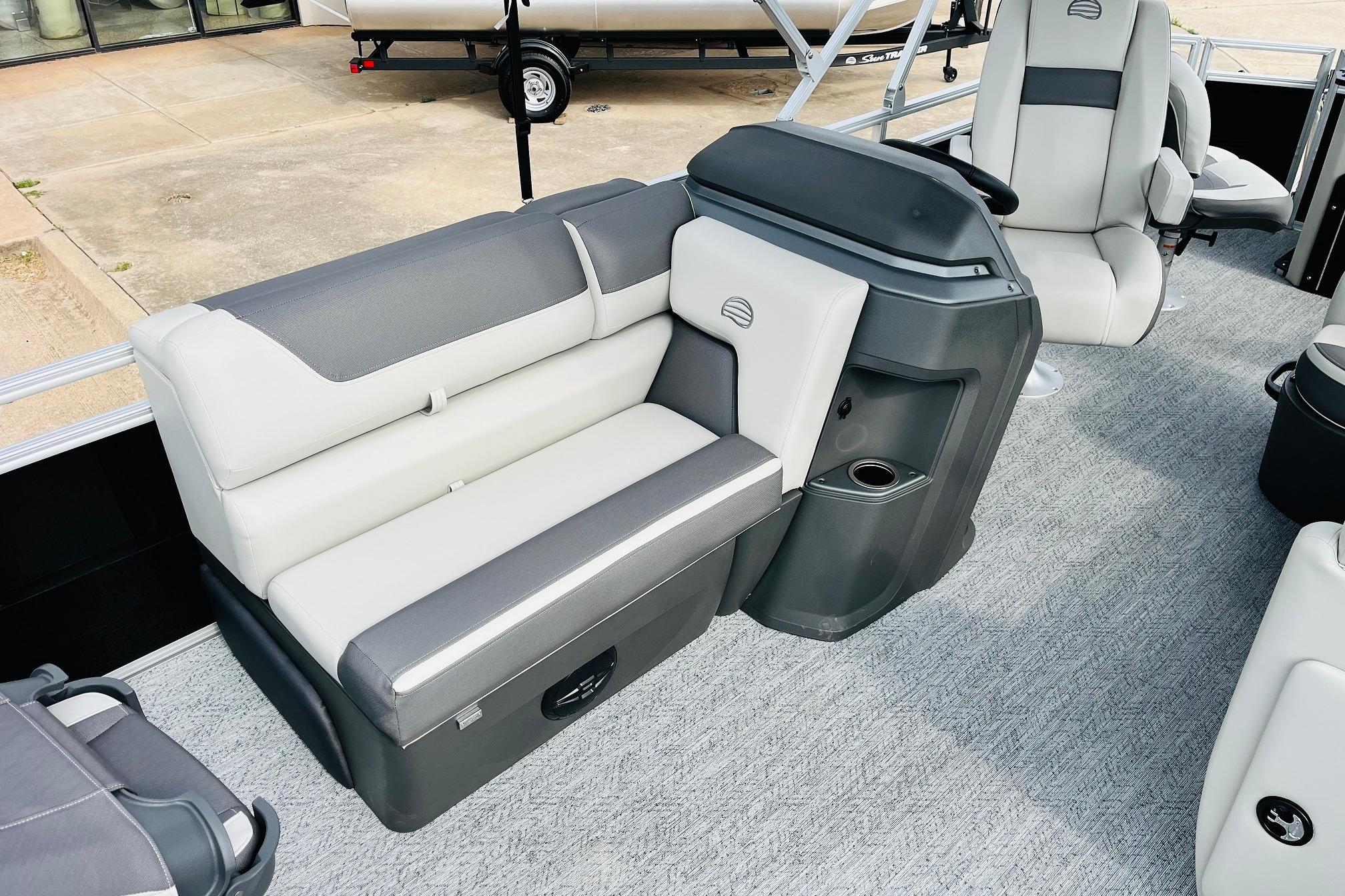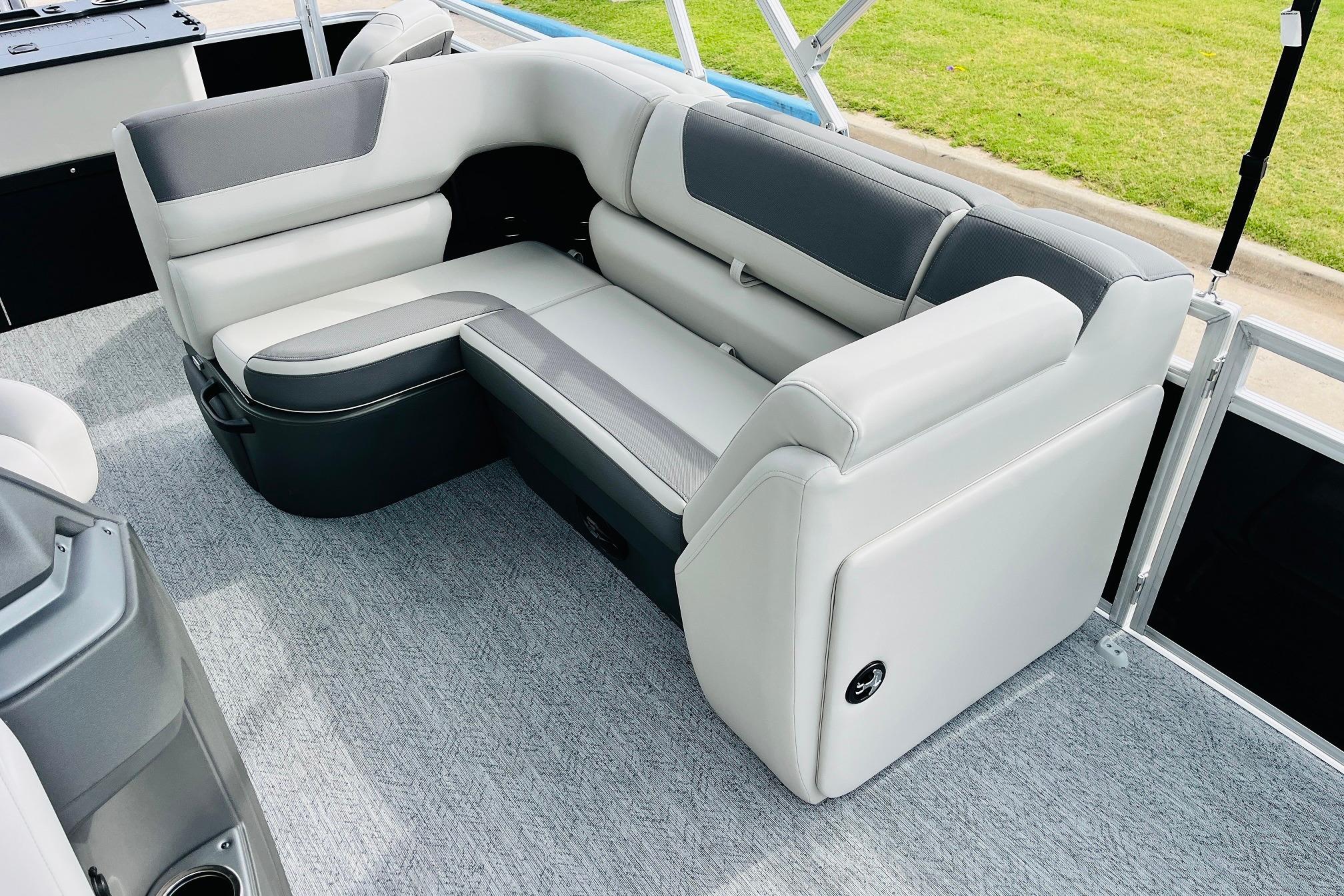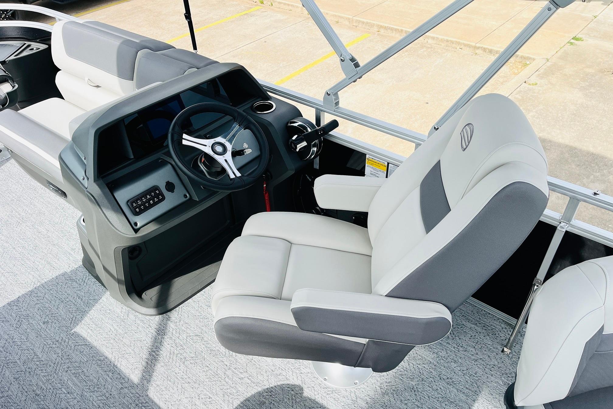 The 2026 FISHIN' BARGE 20 DLX takes fun seriously, and you will too when you're casting lines with the family from its 19' deck. Claim your favorite spot from either the fore or aft fishing decks, which boast 3 casting chairs, 2 aerated livewells, and rail-mounted holders ready to present your rods and tools. Those fishing chairs are removable and foldable to allow for deck customization. Both ends offer extra storage areas for tackle and tools.