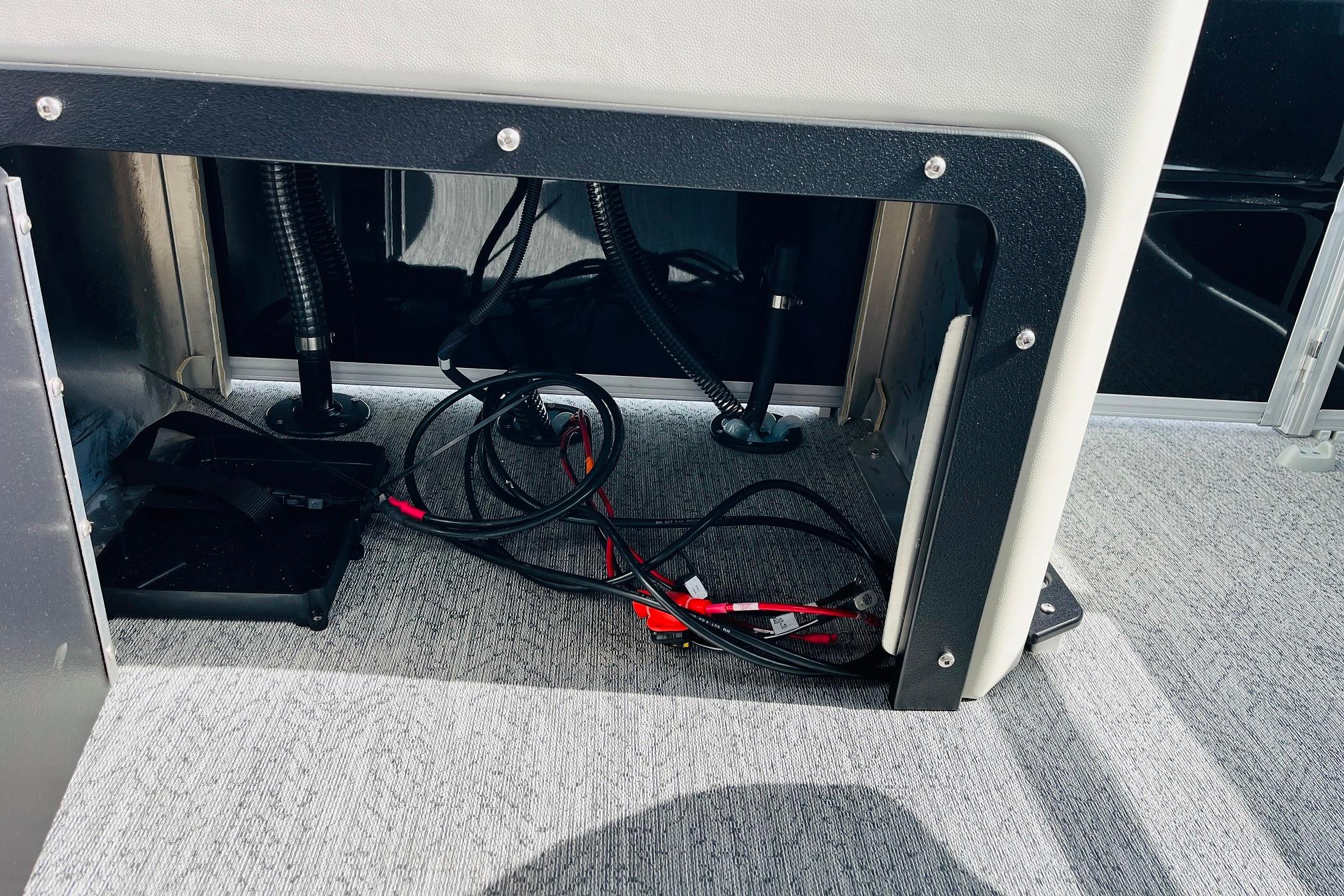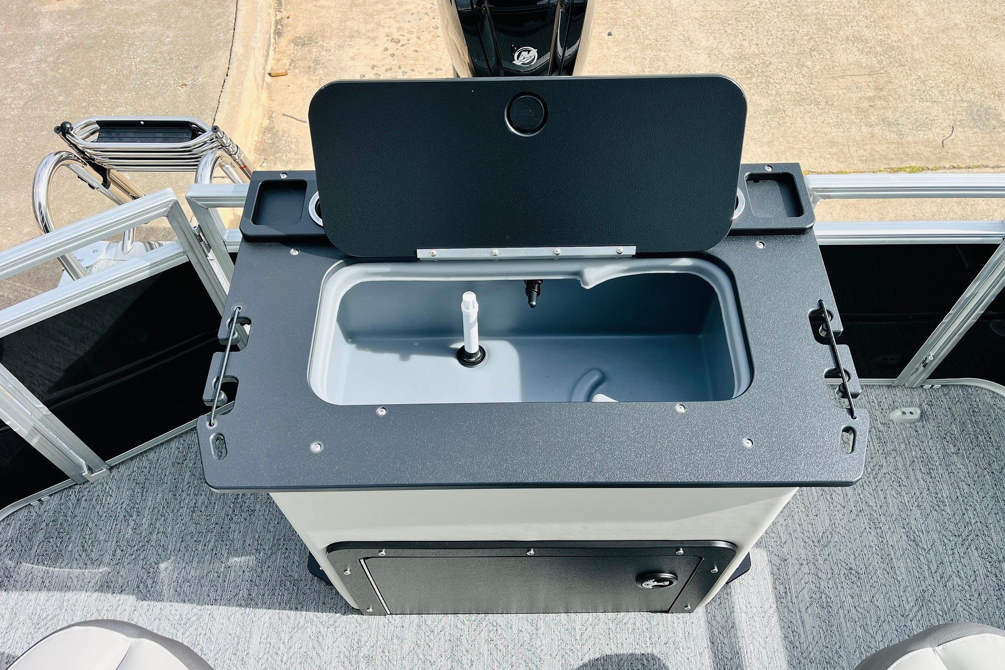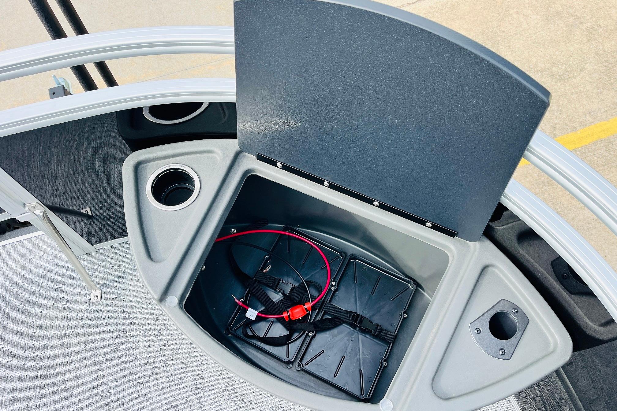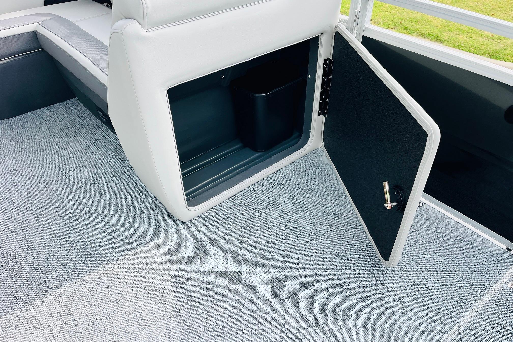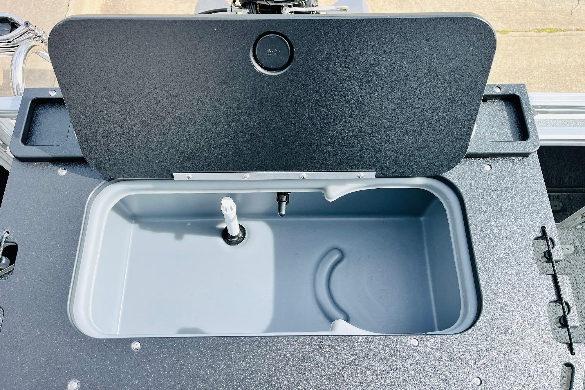 The 2026 FISHIN' BARGE 20 DLX takes fun seriously, and you will too when you're casting lines with the family from its 19' deck. Claim your favorite spot from either the fore or aft fishing decks, which boast 3 casting chairs, 2 aerated livewells, and rail-mounted holders ready to present your rods and tools. Those fishing chairs are removable and foldable to allow for deck customization. Both ends offer extra storage areas for tackle and tools.