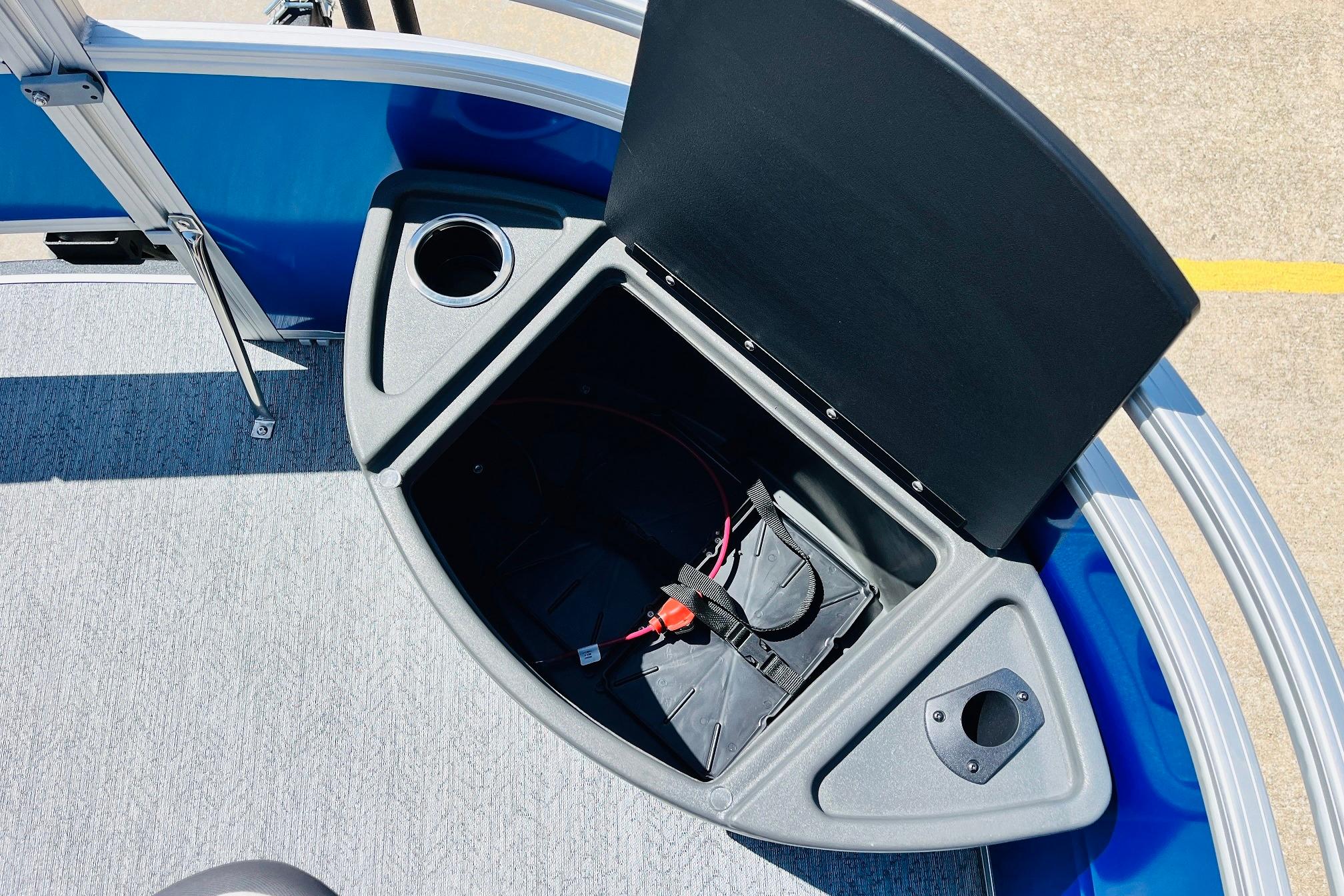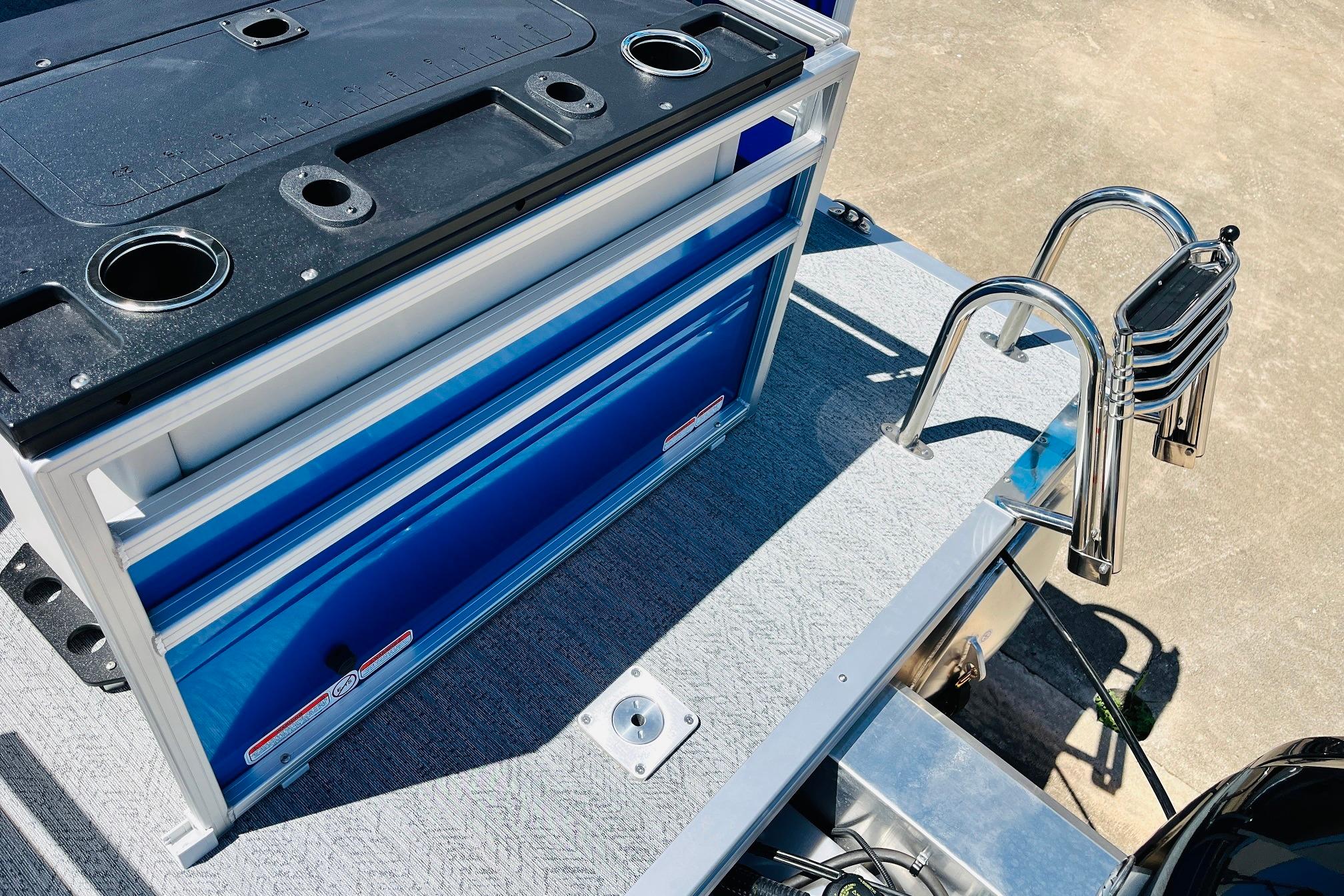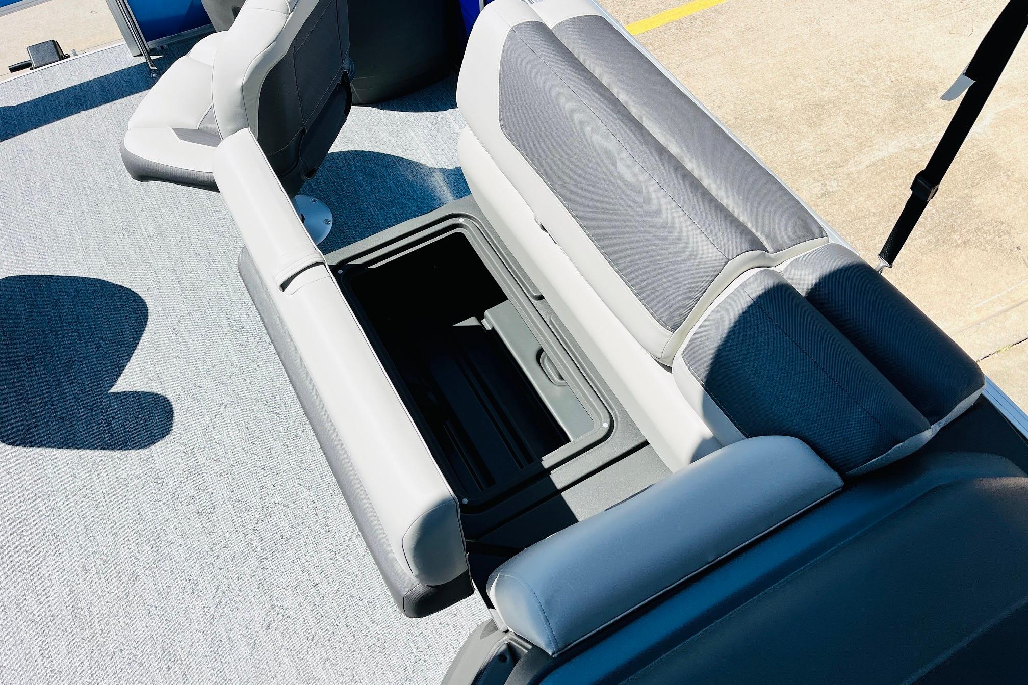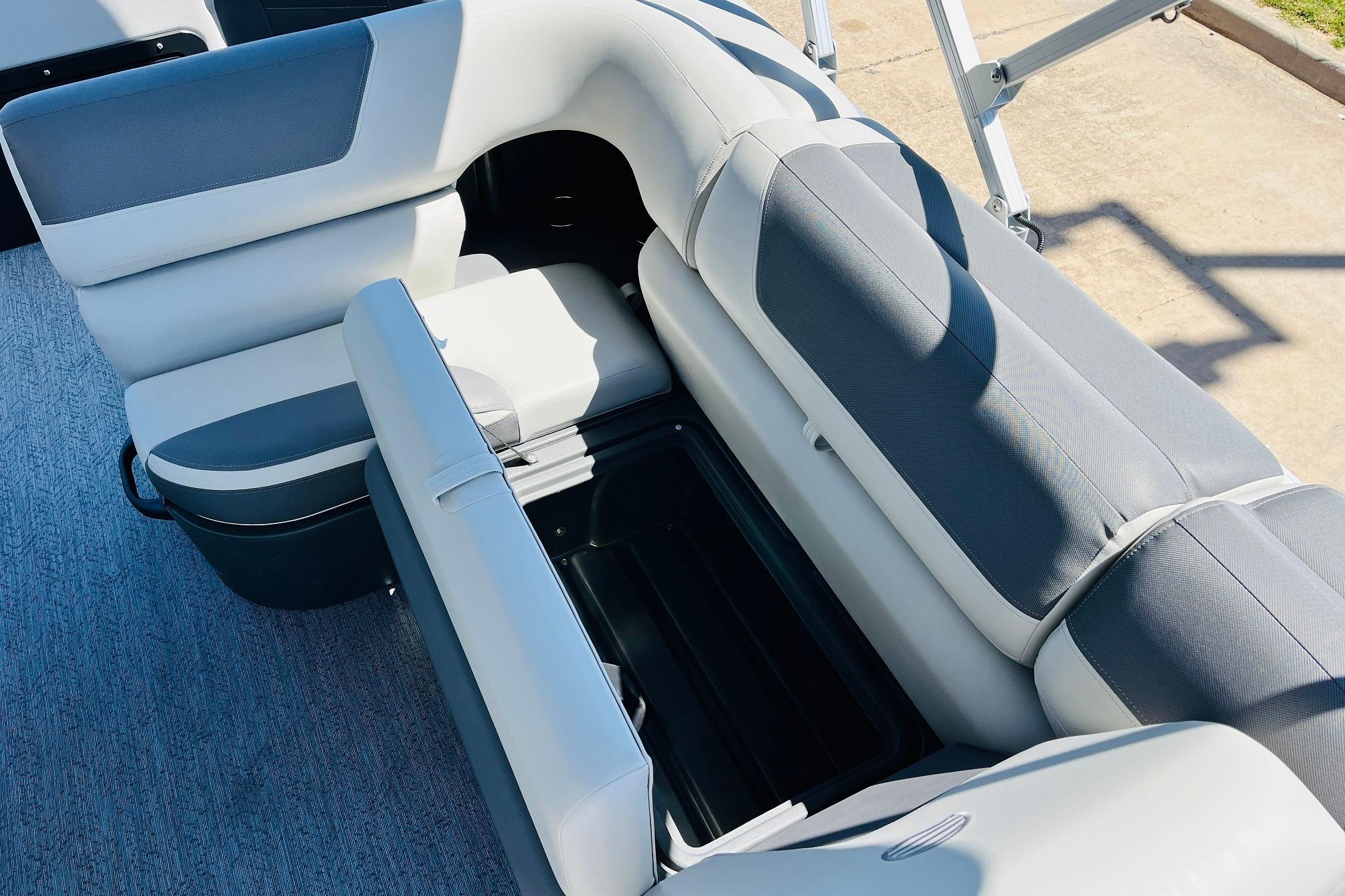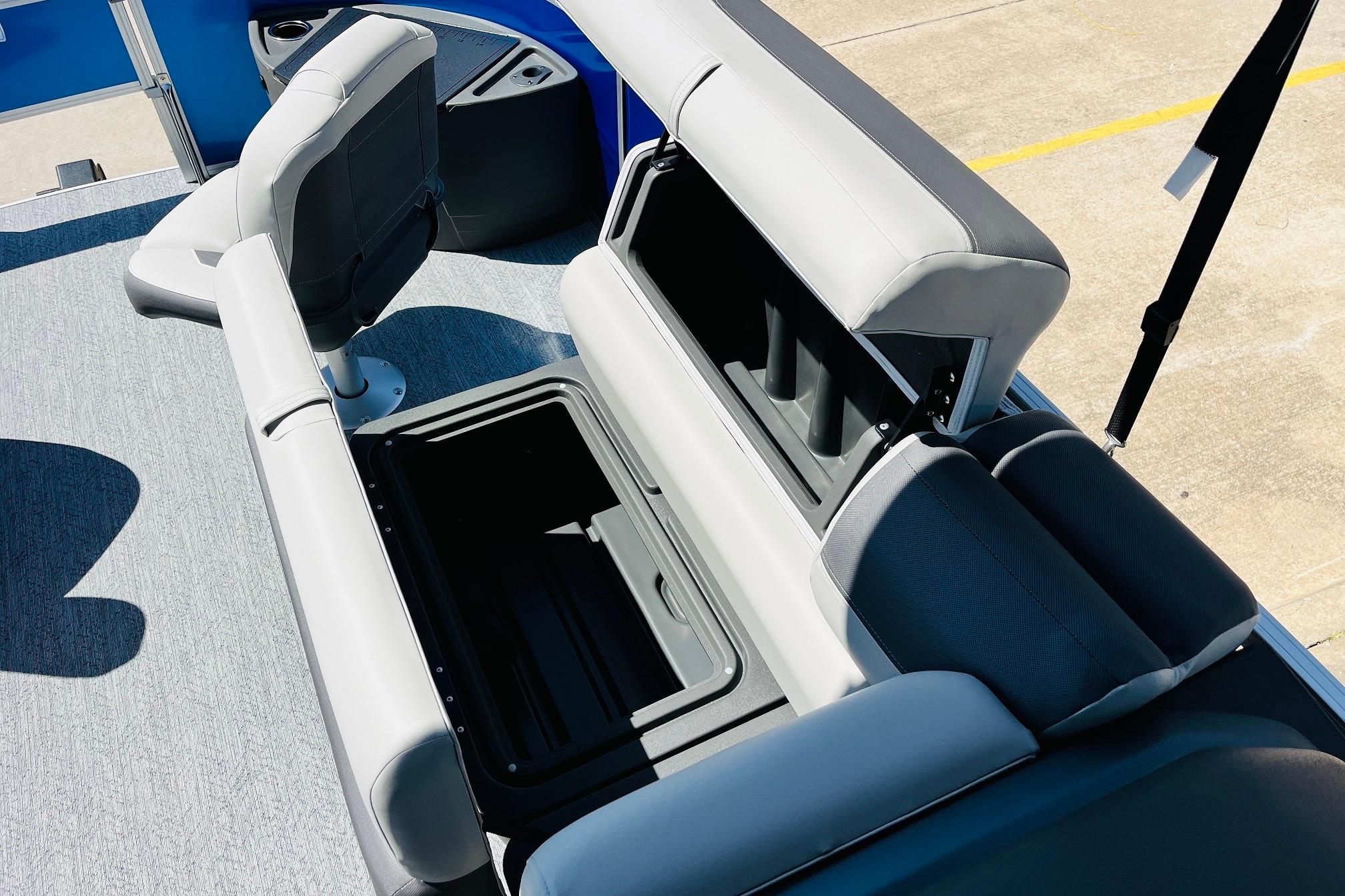 The 2026 FISHIN' BARGE 20 DLX takes fun seriously, and you will too when you're casting lines with the family from its 19' deck. Claim your favorite spot from either the fore or aft fishing decks, which boast 3 casting chairs, 2 aerated livewells, and rail-mounted holders ready to present your rods and tools. Those fishing chairs are removable and foldable to allow for deck customization. Both ends offer extra storage areas for tackle and tools.Those who are just along for the ride can relax in the 2 lounge seats with plenty of drink holders and a removable table. Those seats also boast the STOW MORE system, which secrets away storage areas under the seat cushions and seat backs. If the sun's beating down on you, put up the 9' QuickLift bimini top for some cool shade. Create a soundtrack for your trip with the standard Wet Sounds stereo with Bluetooth and 2 upholstery speakers. The wraparound fence and 3 inward swinging doors keep kids safe. The rear features a reboarding platform with a telescoping ladder with extra wide steps.