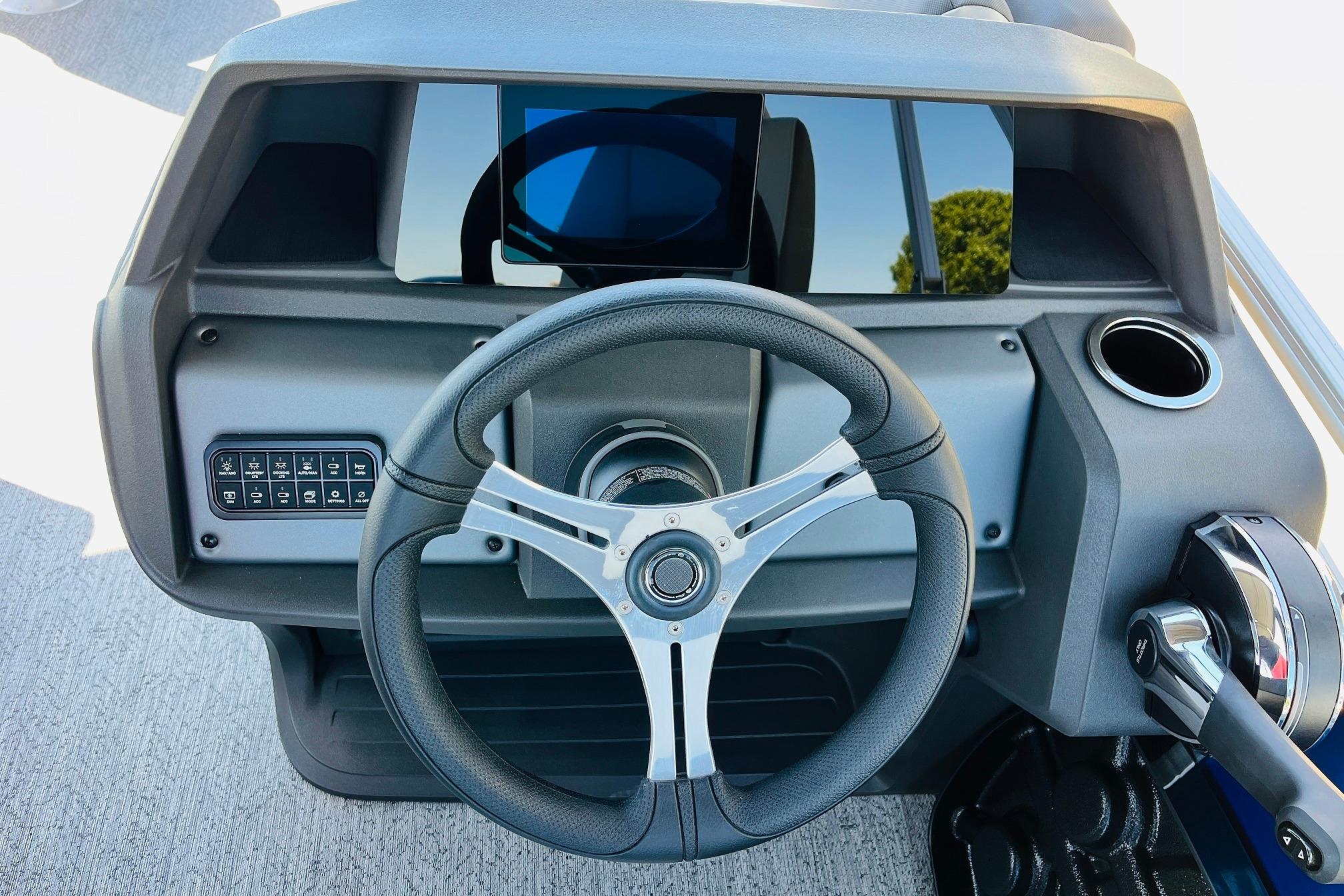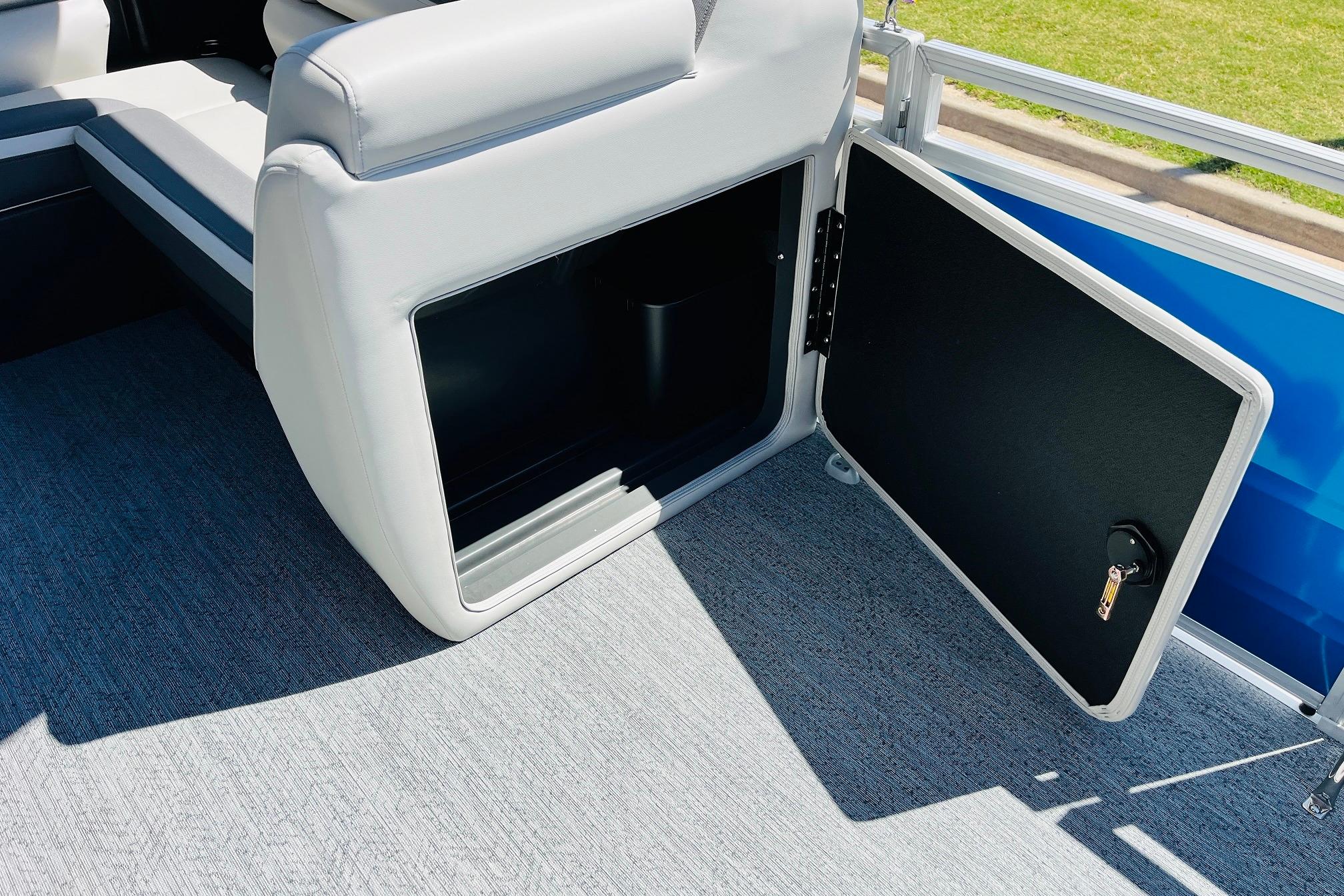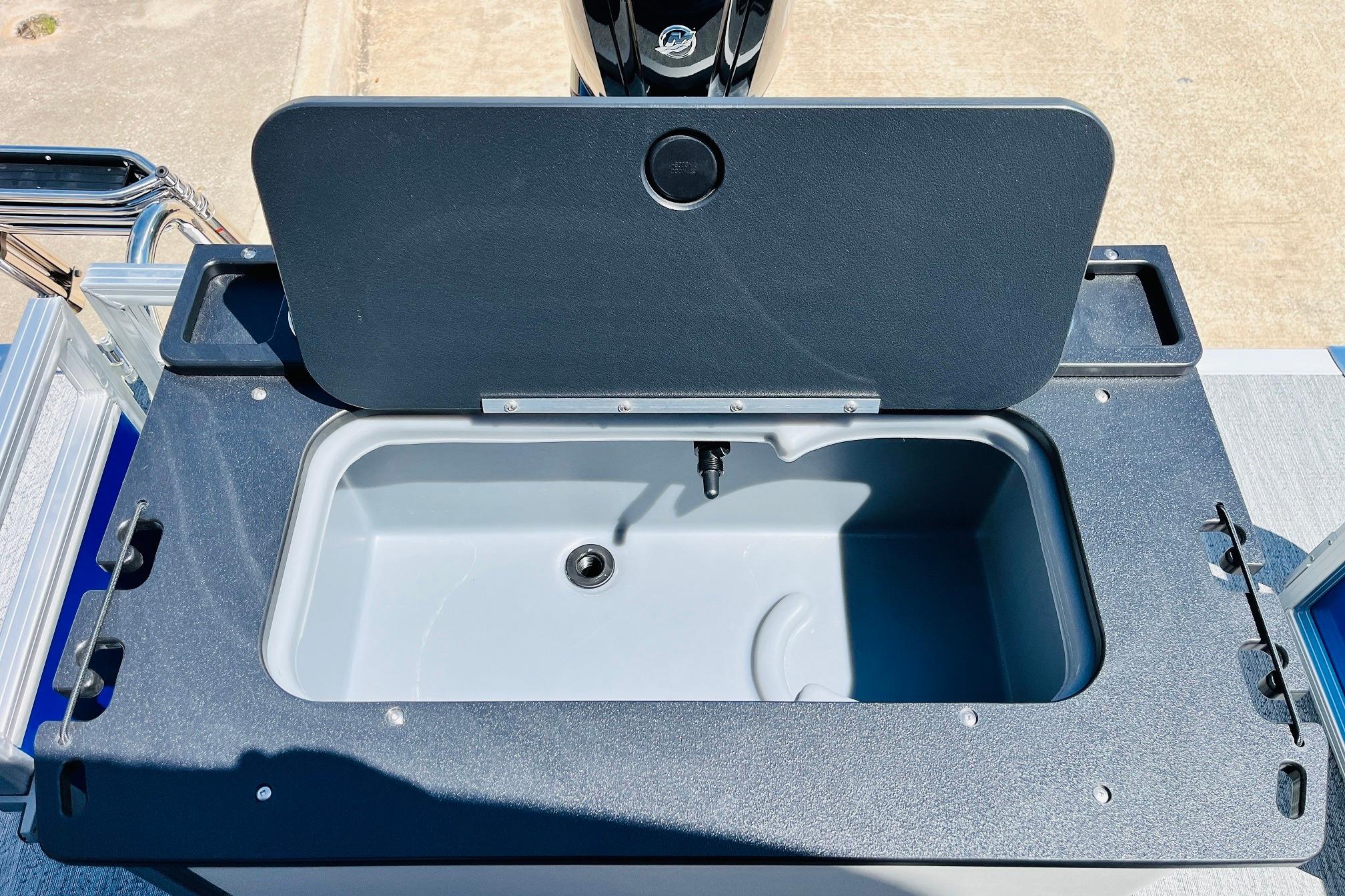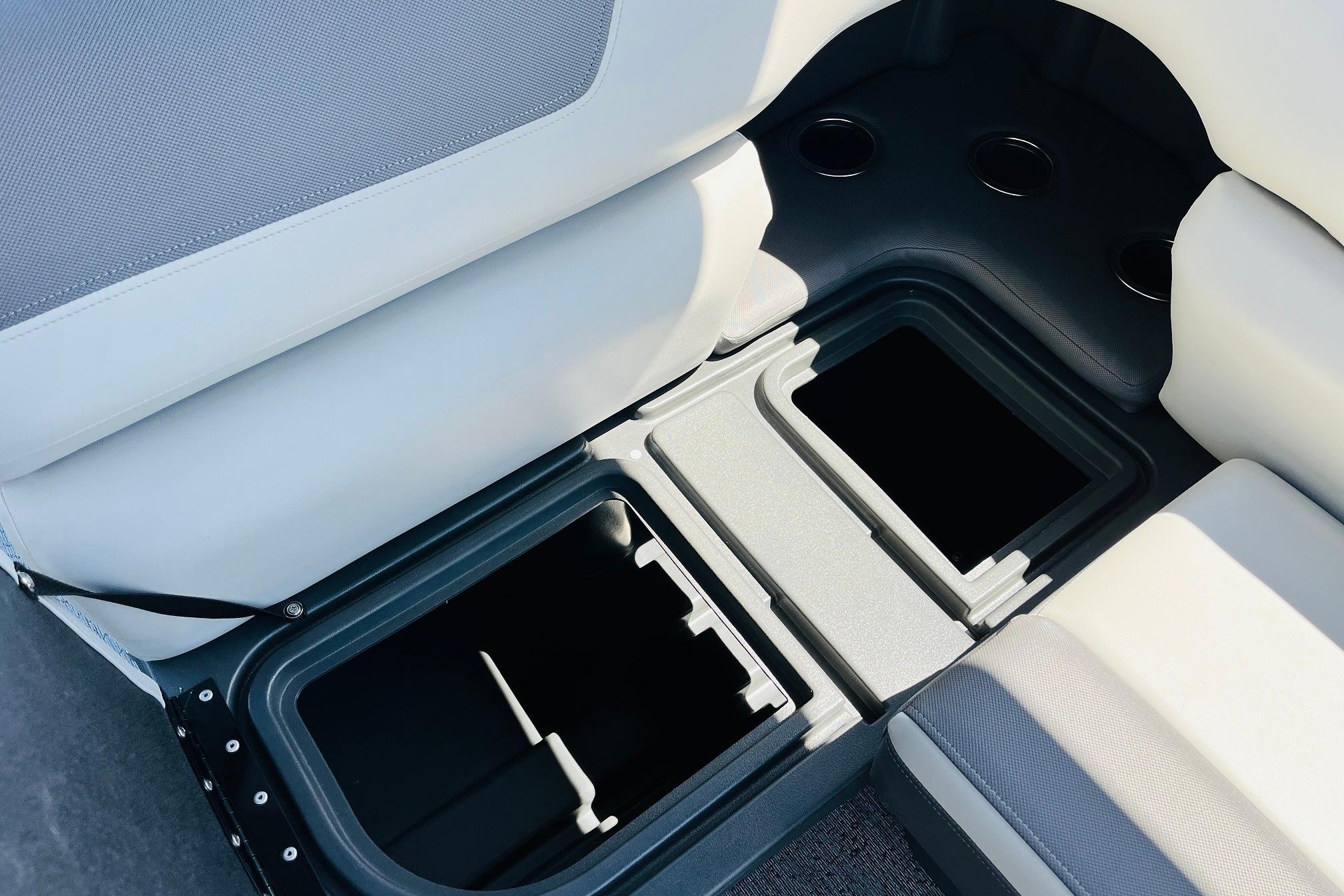 The 2026 FISHIN' BARGE 20 DLX takes fun seriously, and you will too when you're casting lines with the family from its 19' deck. Claim your favorite spot from either the fore or aft fishing decks, which boast 3 casting chairs, 2 aerated livewells, and rail-mounted holders ready to present your rods and tools. Those fishing chairs are removable and foldable to allow for deck customization. Both ends offer extra storage areas for tackle and tools.Those who are just along for the ride can relax in the 2 lounge seats with plenty of drink holders and a removable table. Those seats also boast the STOW MORE system, which secrets away storage areas under the seat cushions and seat backs. If the sun's beating down on you, put up the 9' QuickLift bimini top for some cool shade. Create a soundtrack for your trip with the standard Wet Sounds stereo with Bluetooth and 2 upholstery speakers. The wraparound fence and 3 inward swinging doors keep kids safe. The rear features a reboarding platform with a telescoping ladder with extra wide steps.