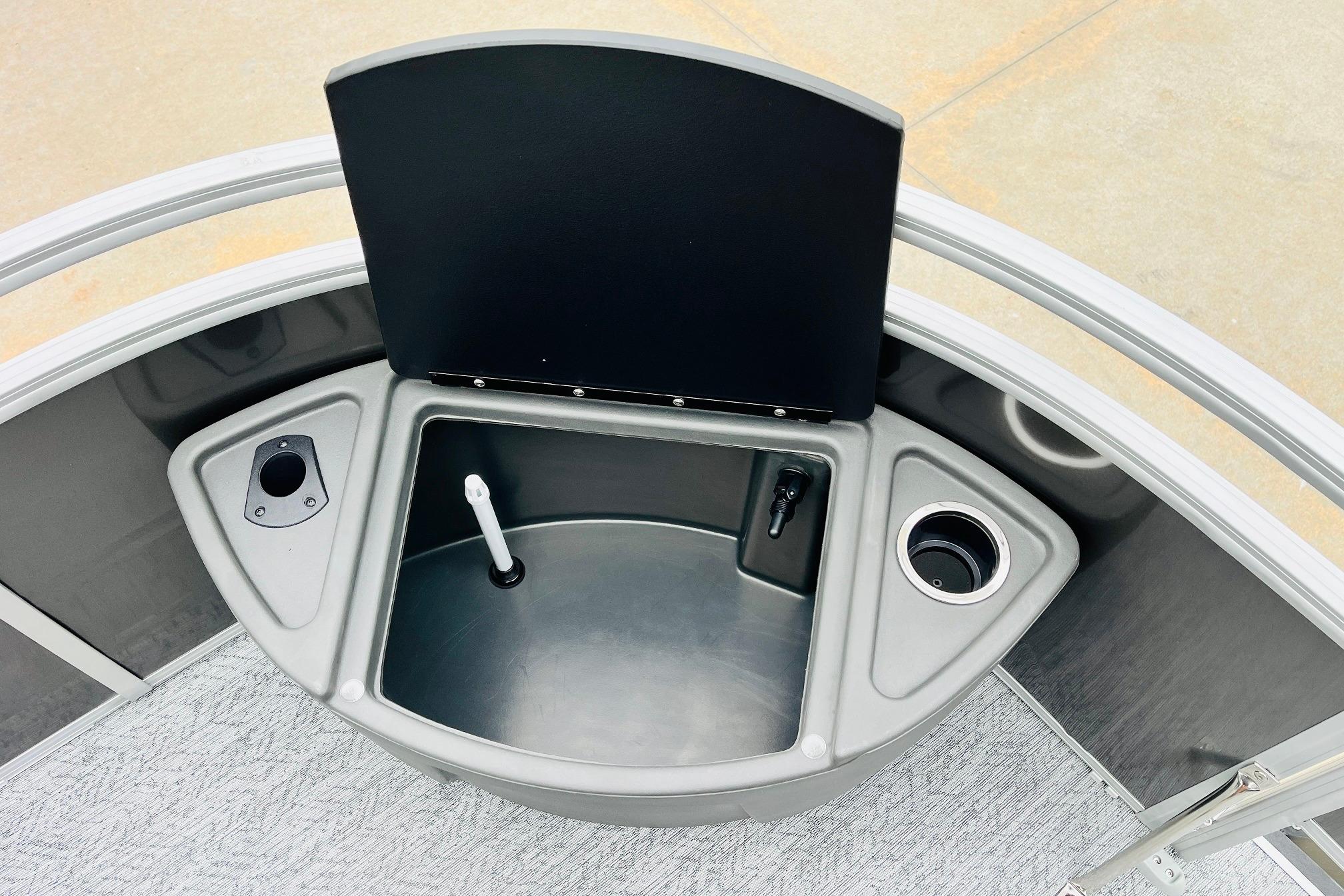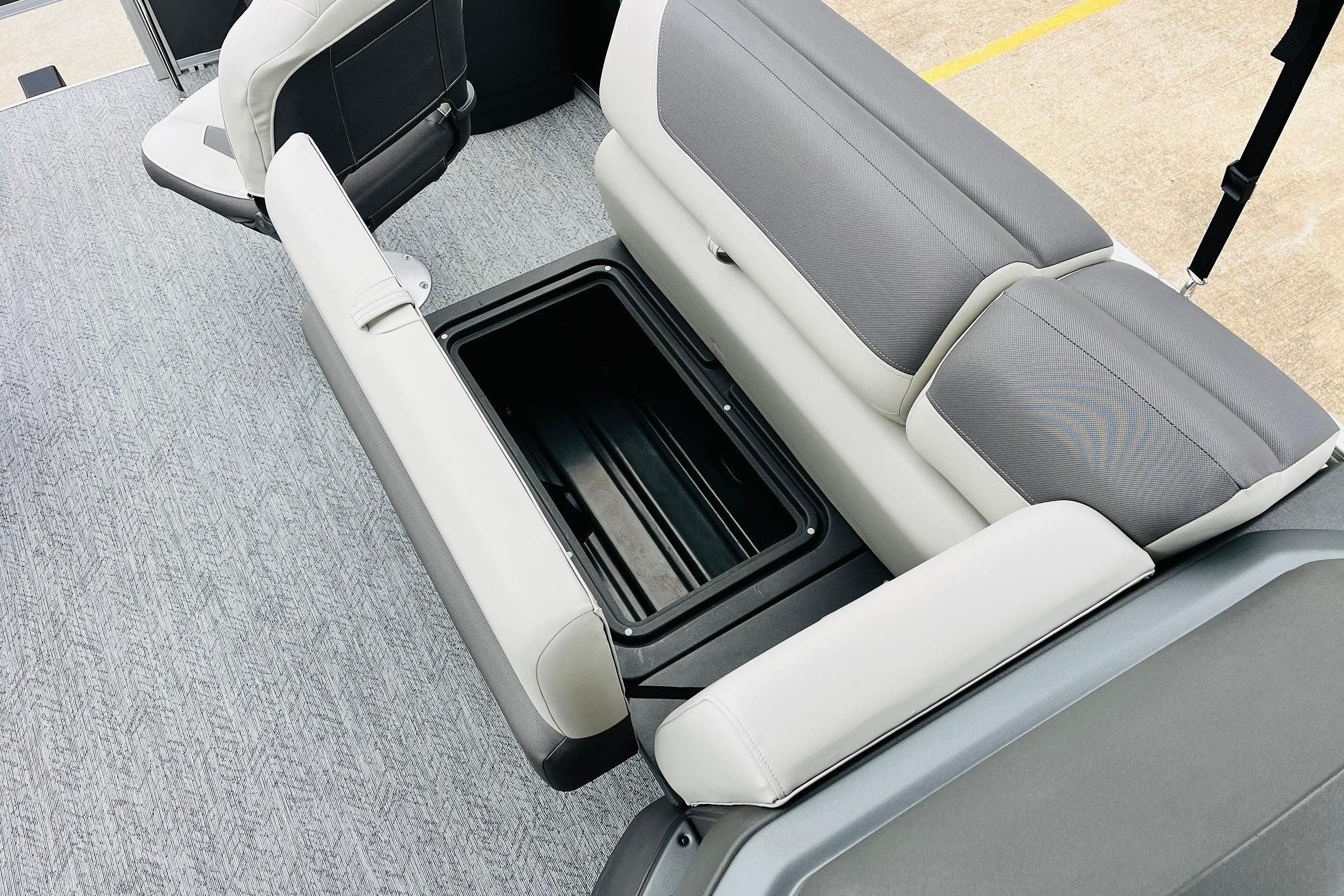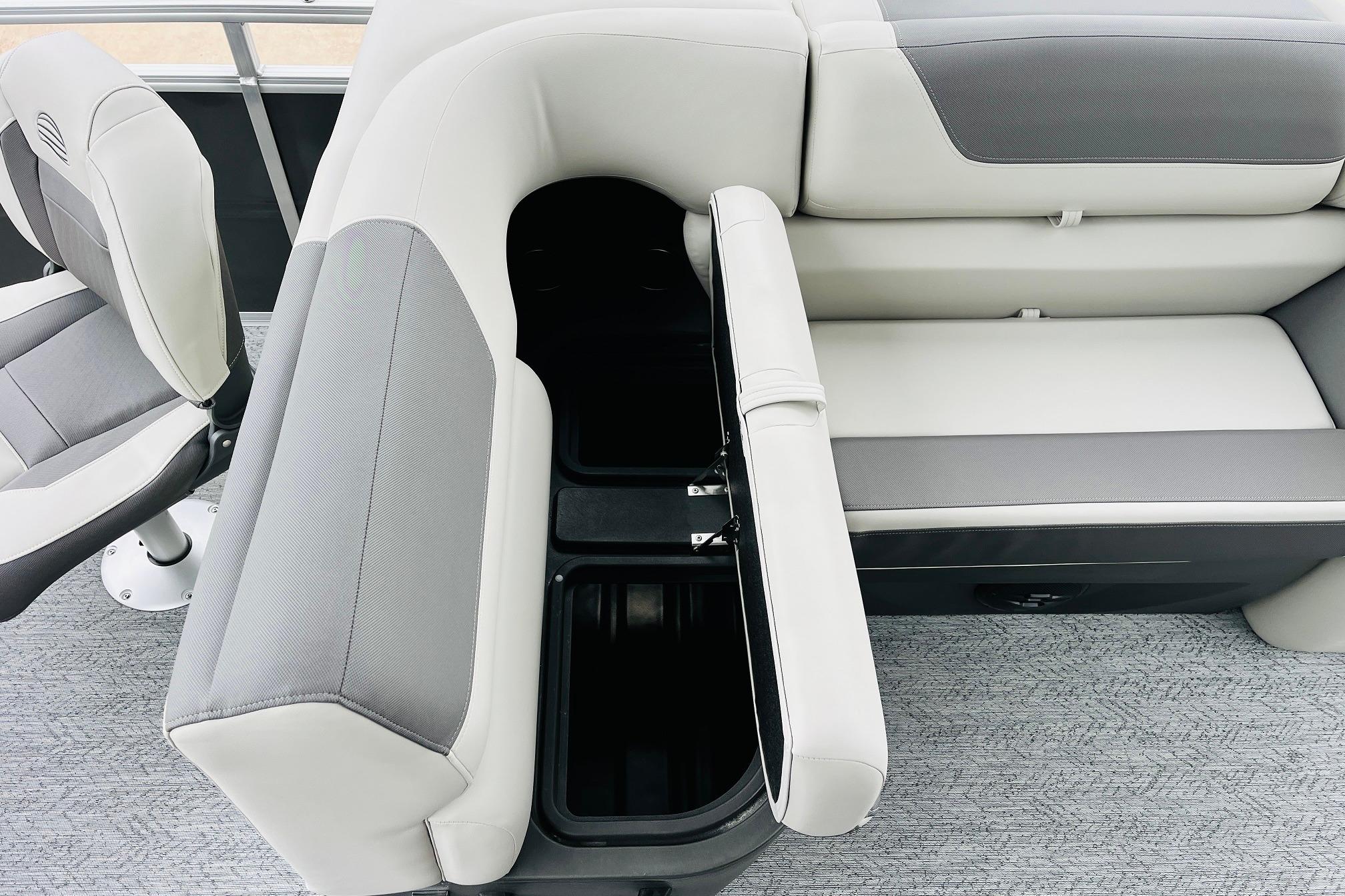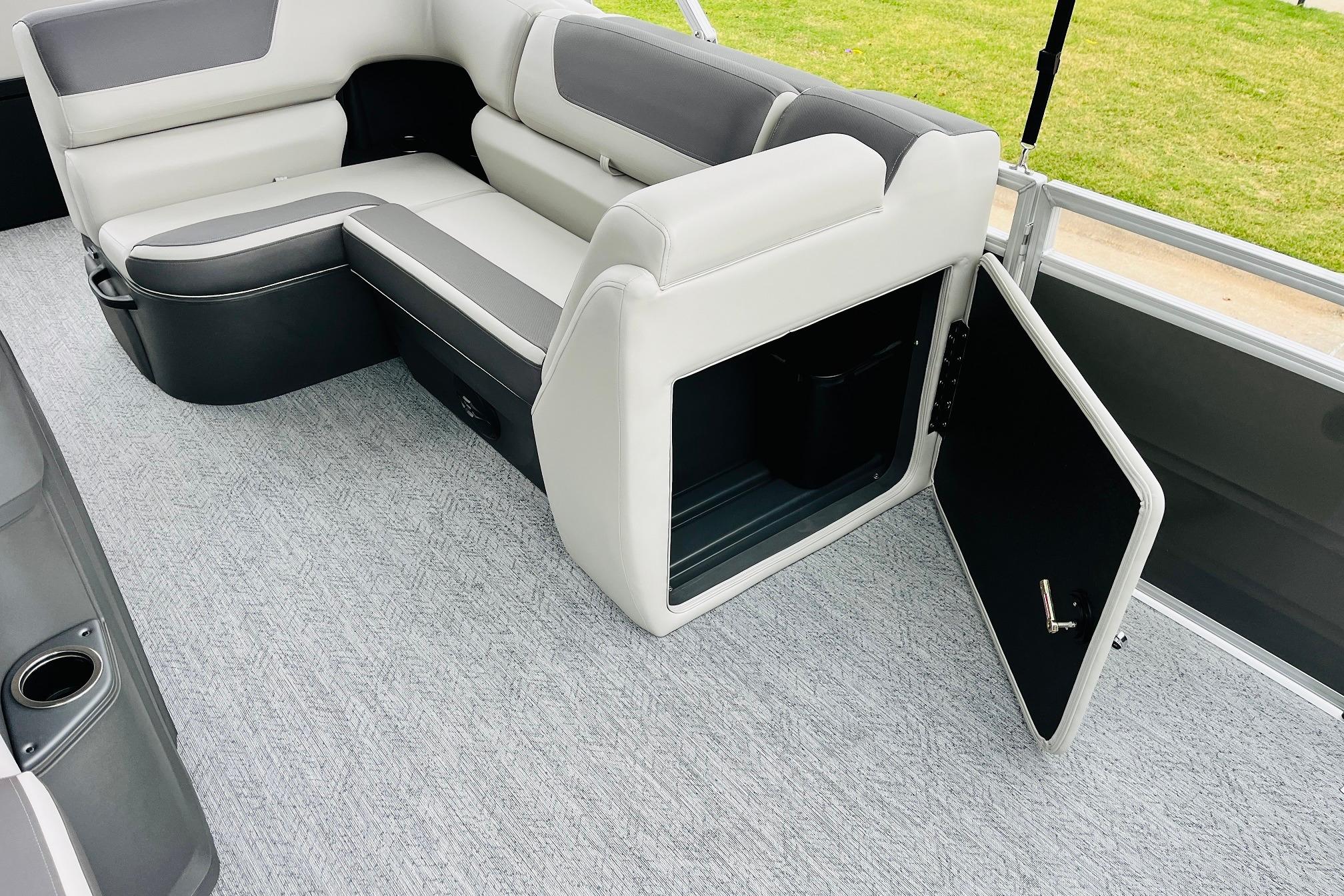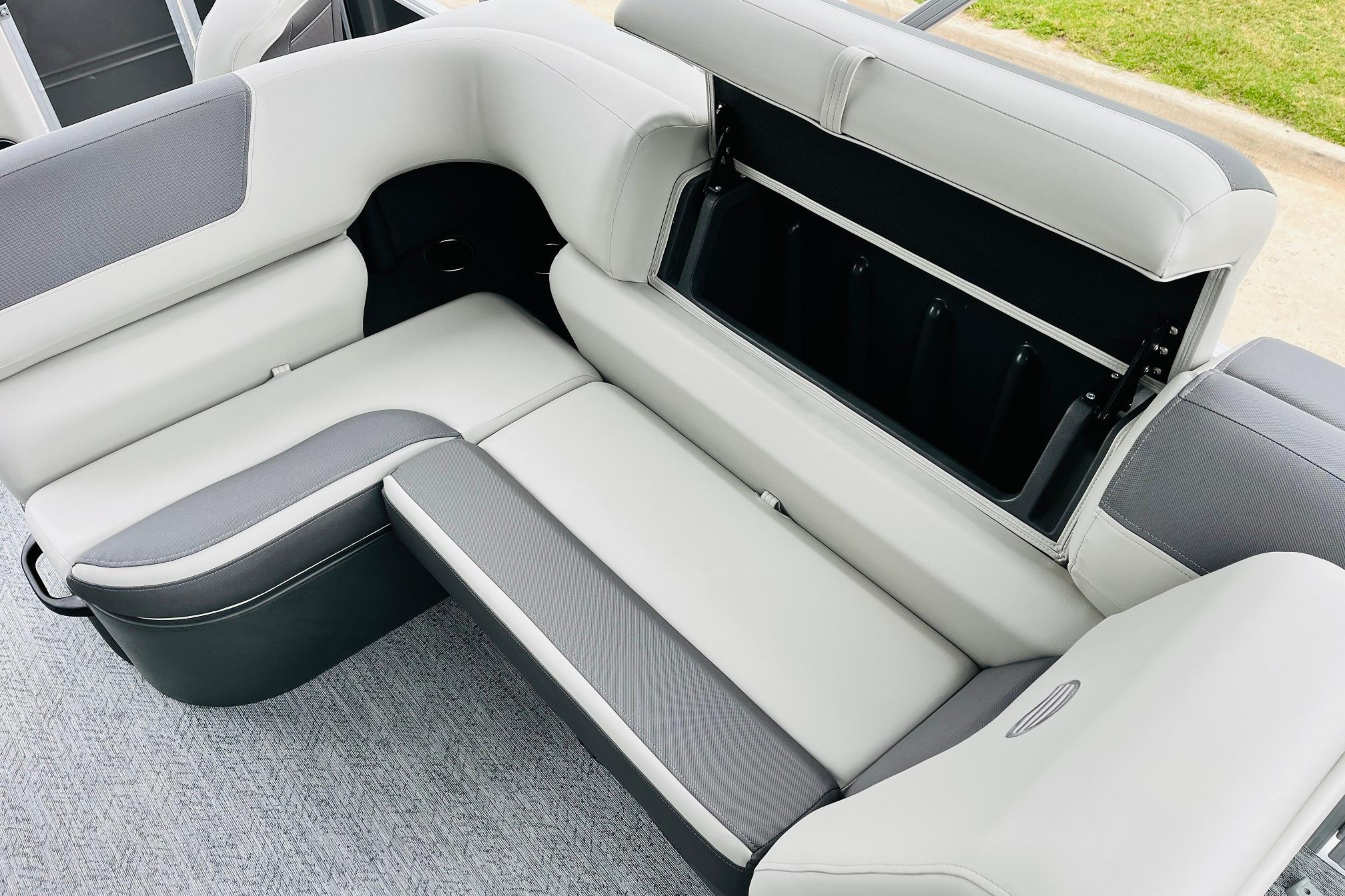 The 2026 FISHIN' BARGE 20 DLX takes fun seriously, and you will too when you're casting lines with the family from its 19' deck. Claim your favorite spot from either the fore or aft fishing decks, which boast 3 casting chairs, 2 aerated livewells, and rail-mounted holders ready to present your rods and tools. Those fishing chairs are removable and foldable to allow for deck customization. Both ends offer extra storage areas for tackle and tools.Those who are just along for the ride can relax in the 2 lounge seats with plenty of drink holders and a removable table. Those seats also boast the STOW MORE system, which secrets away storage areas under the seat cushions and seat backs. If the sun's beating down on you, put up the 9' QuickLift bimini top for some cool shade. Create a soundtrack for your trip with the standard Wet Sounds stereo with Bluetooth and 2 upholstery speakers. The wraparound fence and 3 inward swinging doors keep kids safe. The rear features a reboarding platform with a telescoping ladder with extra wide steps.