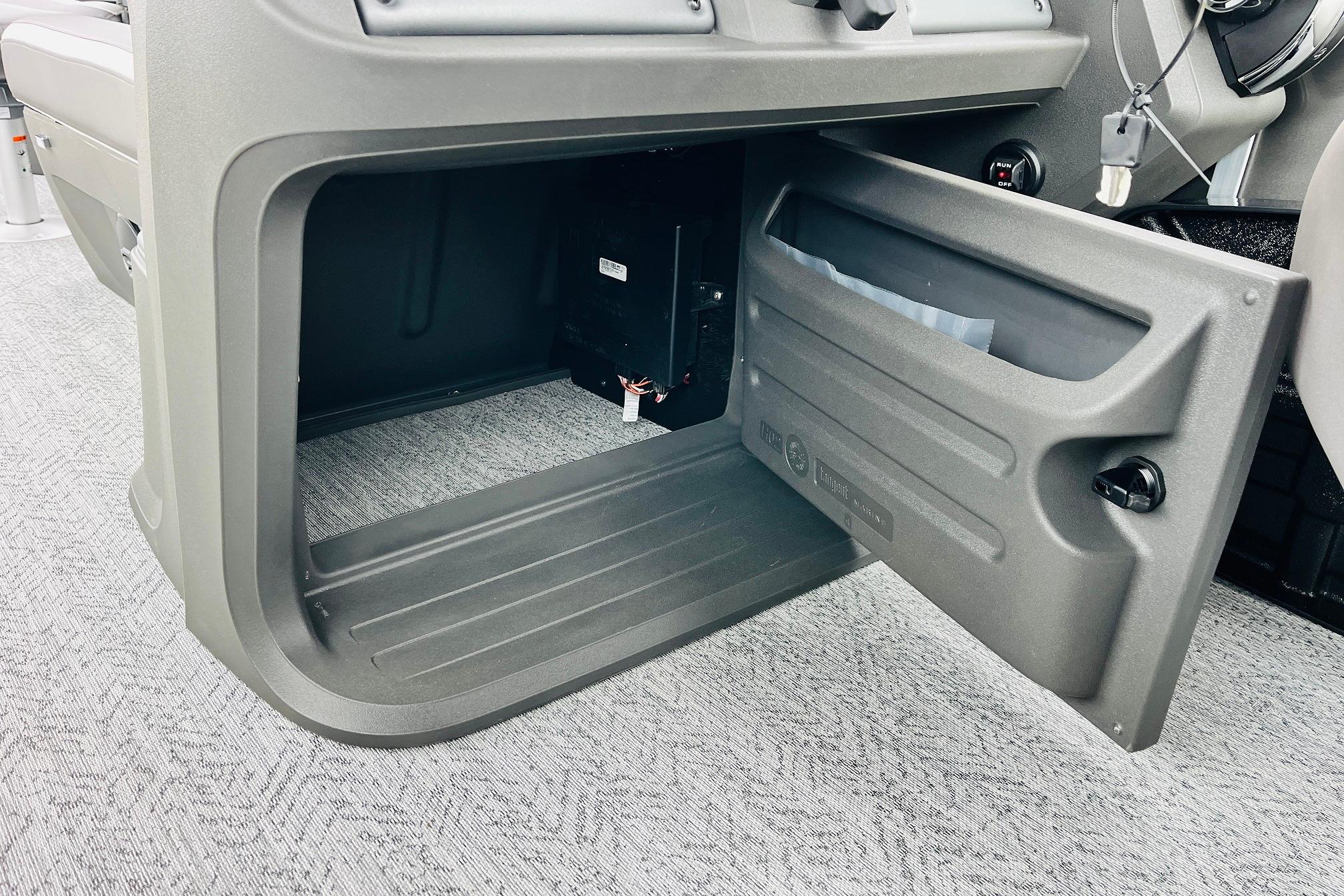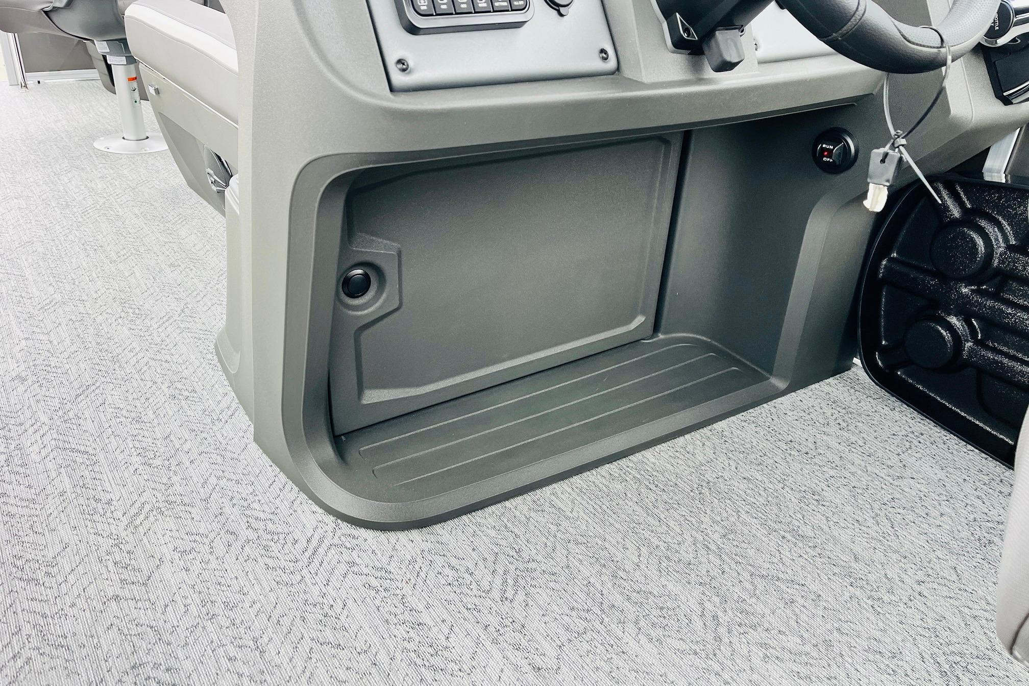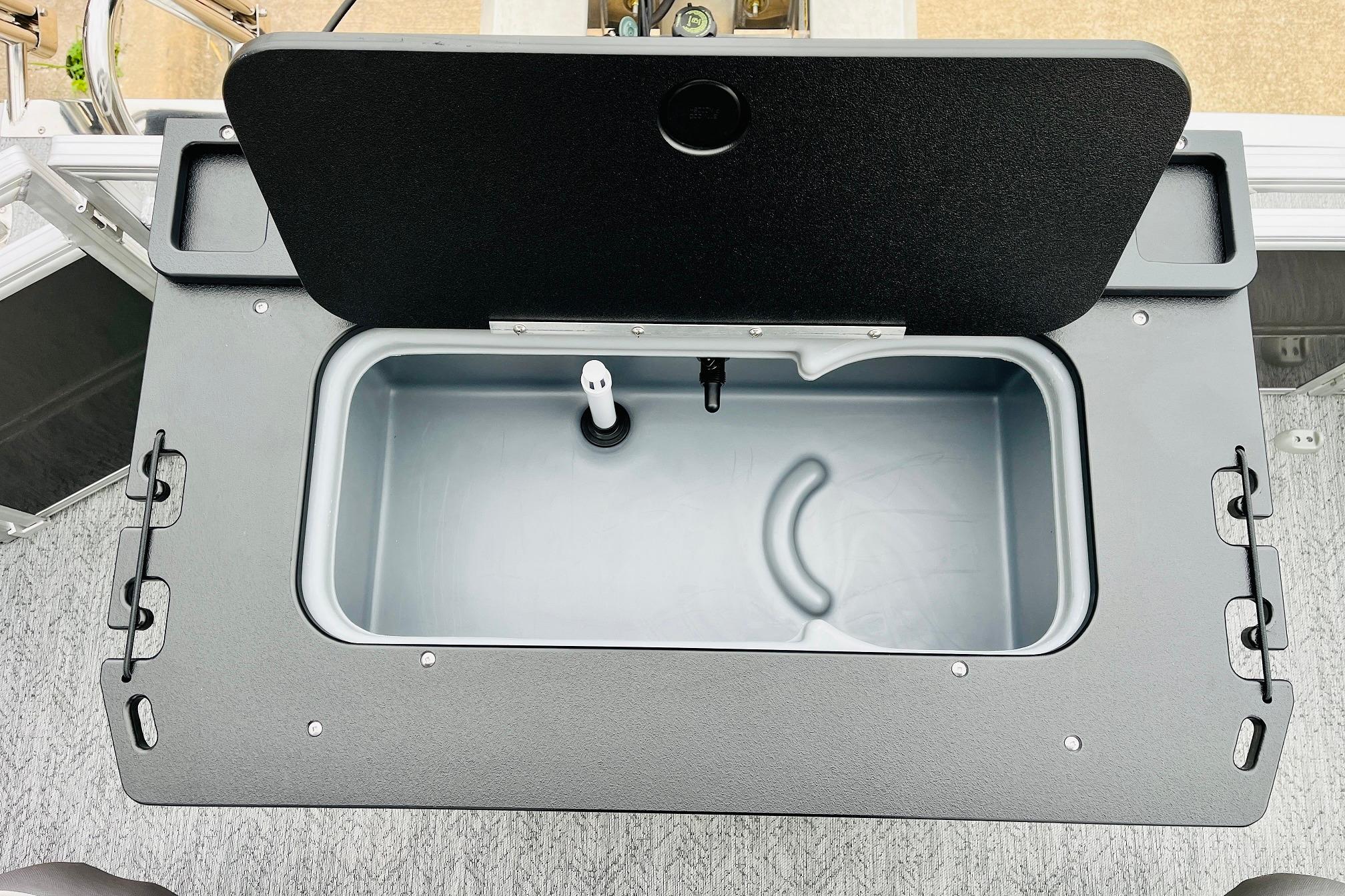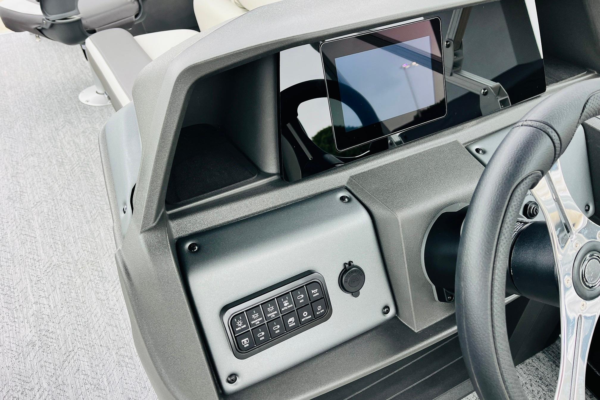 The 2026 FISHIN' BARGE 20 DLX takes fun seriously, and you will too when you're casting lines with the family from its 19' deck. Claim your favorite spot from either the fore or aft fishing decks, which boast 3 casting chairs, 2 aerated livewells, and rail-mounted holders ready to present your rods and tools. Those fishing chairs are removable and foldable to allow for deck customization. Both ends offer extra storage areas for tackle and tools.Those who are just along for the ride can relax in the 2 lounge seats with plenty of drink holders and a removable table. Those seats also boast the STOW MORE system, which secrets away storage areas under the seat cushions and seat backs. If the sun's beating down on you, put up the 9' QuickLift bimini top for some cool shade. Create a soundtrack for your trip with the standard Wet Sounds stereo with Bluetooth and 2 upholstery speakers. The wraparound fence and 3 inward swinging doors keep kids safe. The rear features a reboarding platform with a telescoping ladder with extra wide steps.
