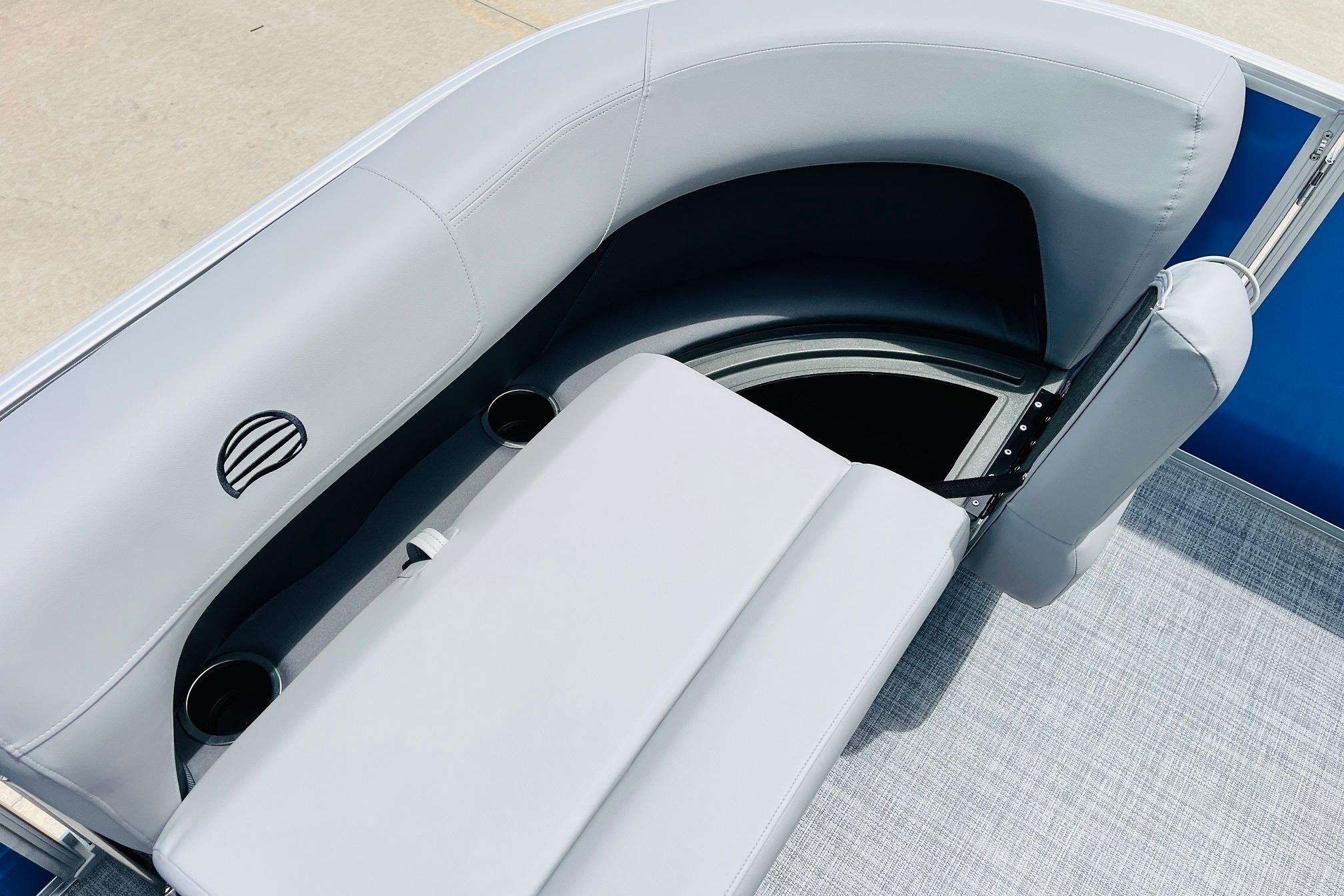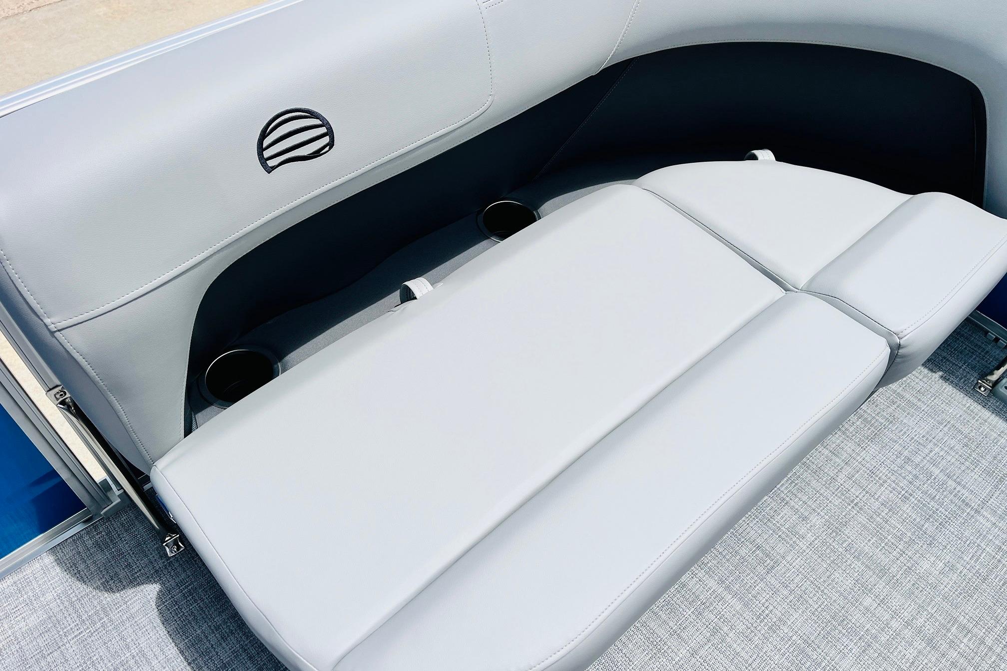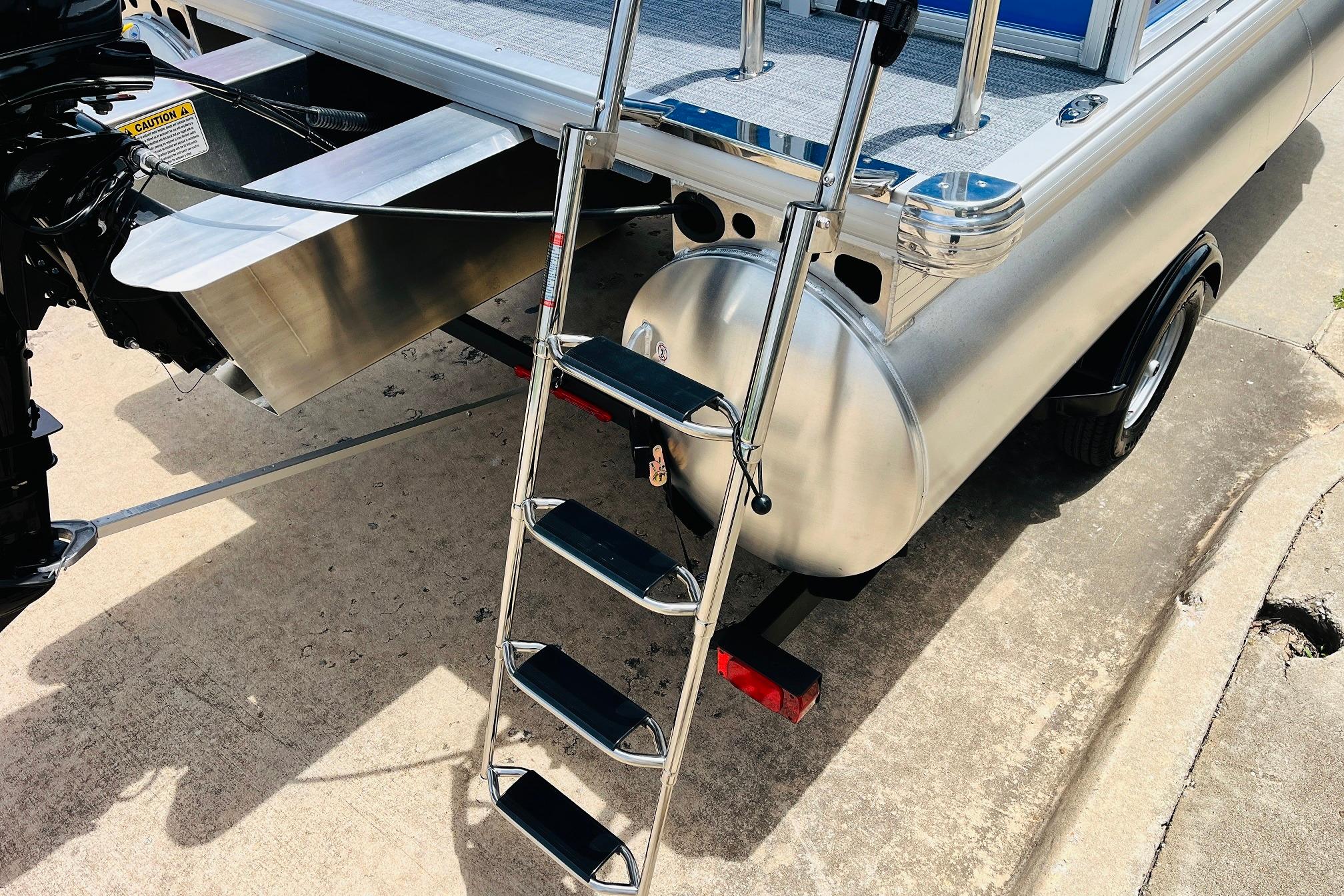 This year's PARTY BARGE gets some slick upgrades. Extra cupholders and storage built into the lounge backrests and improved handles make keeping your supplies at hand easier than ever. A new driver console design creates extra style. The boarding ladder has wider, more ergonomic steps. Crank up the soundtrack of the summer with the standard Bluetooth-capable Wet Sounds stereo and pull up the 7' bimini top to party in the shade when the sun is high. Find your corner of the lake and relax in one of the three corner lounges.Memories come easy in boats like the PARTY BARGE 16 DLX. Start making yours this summer!