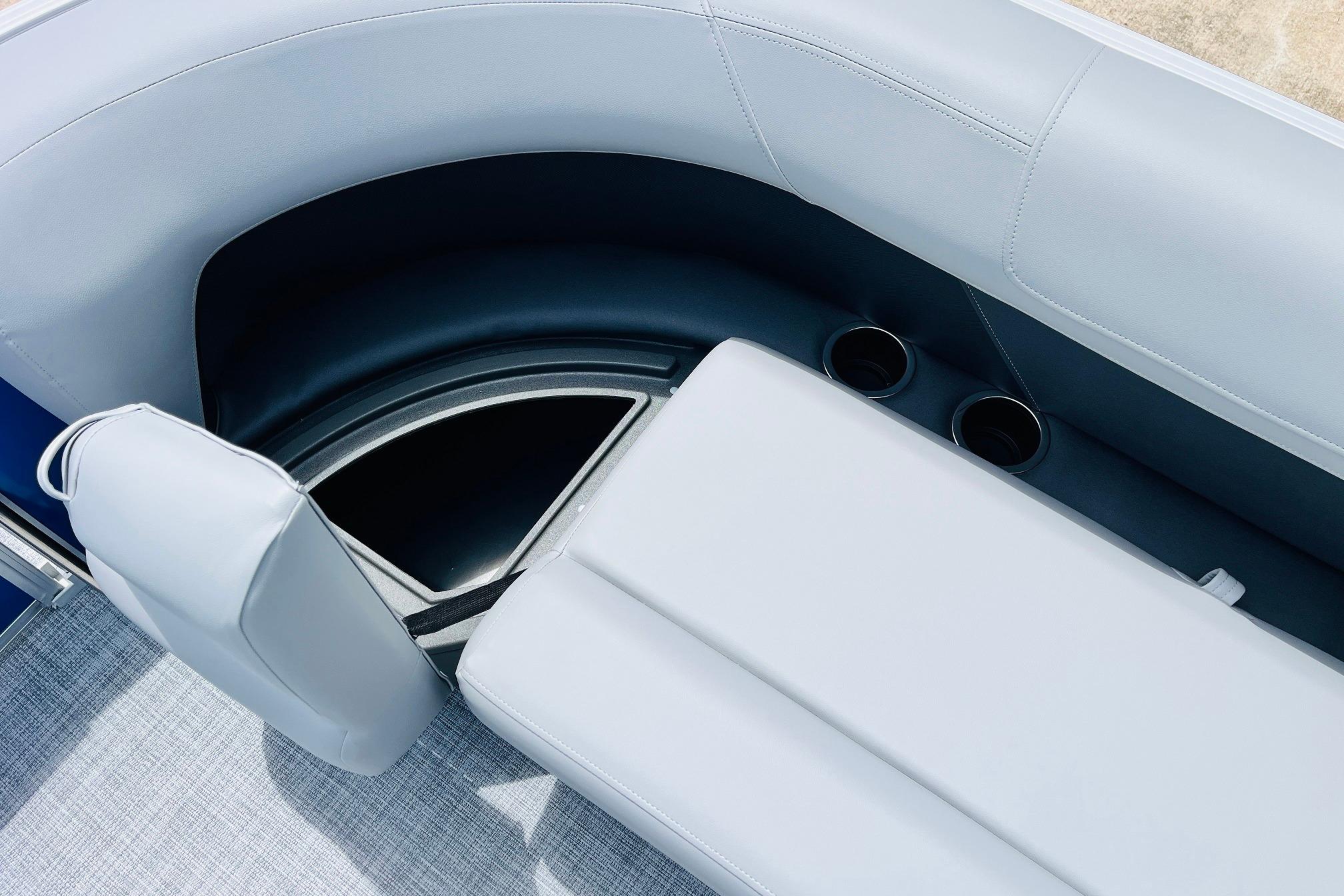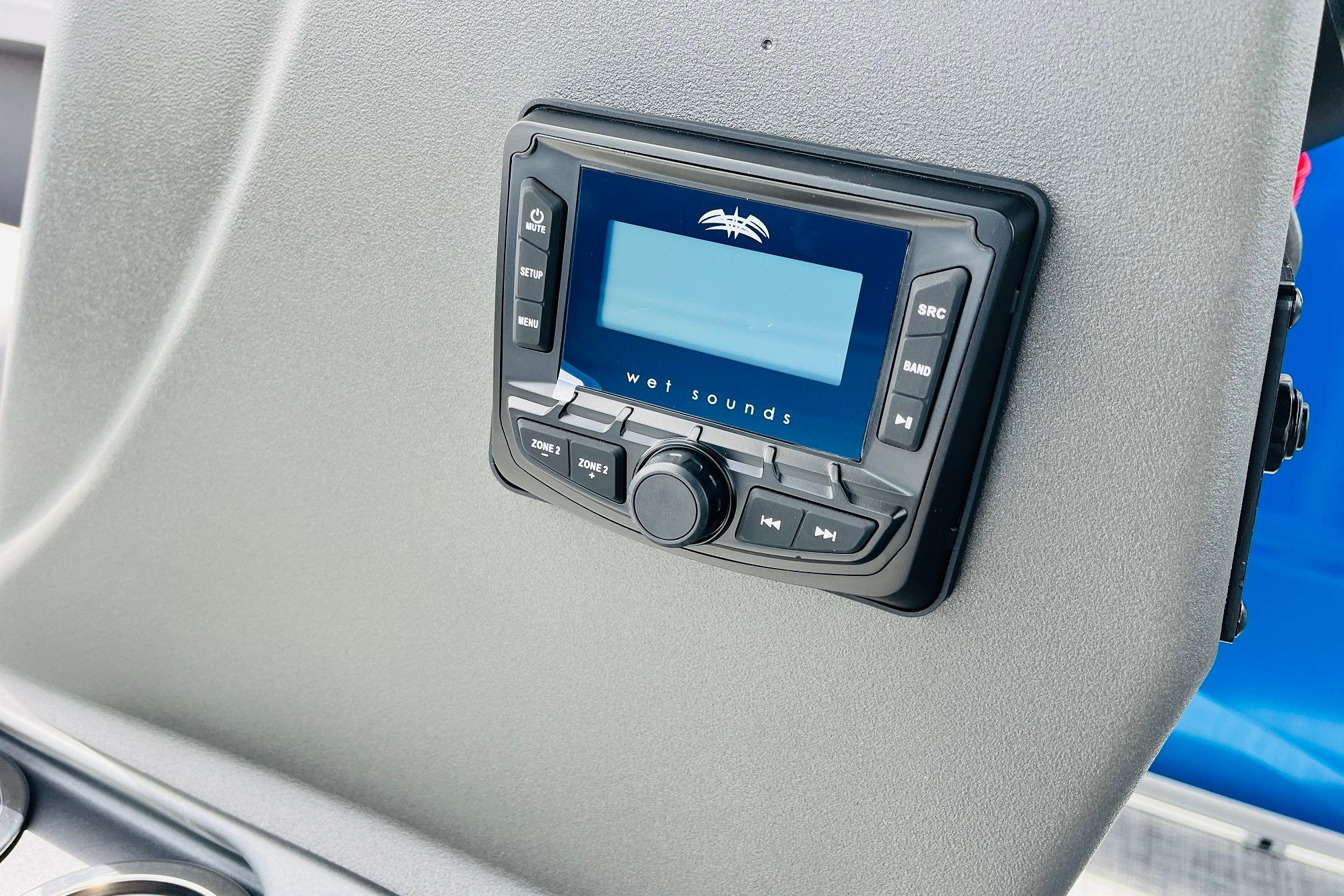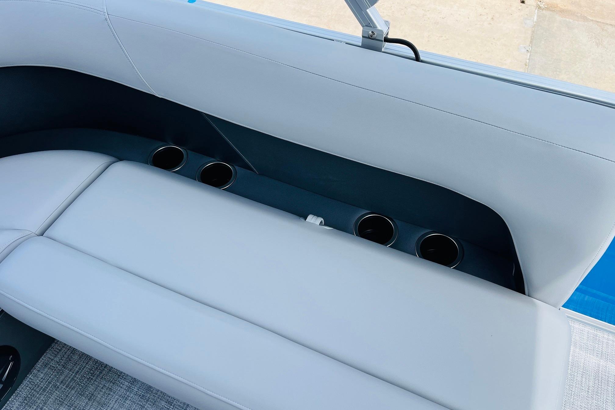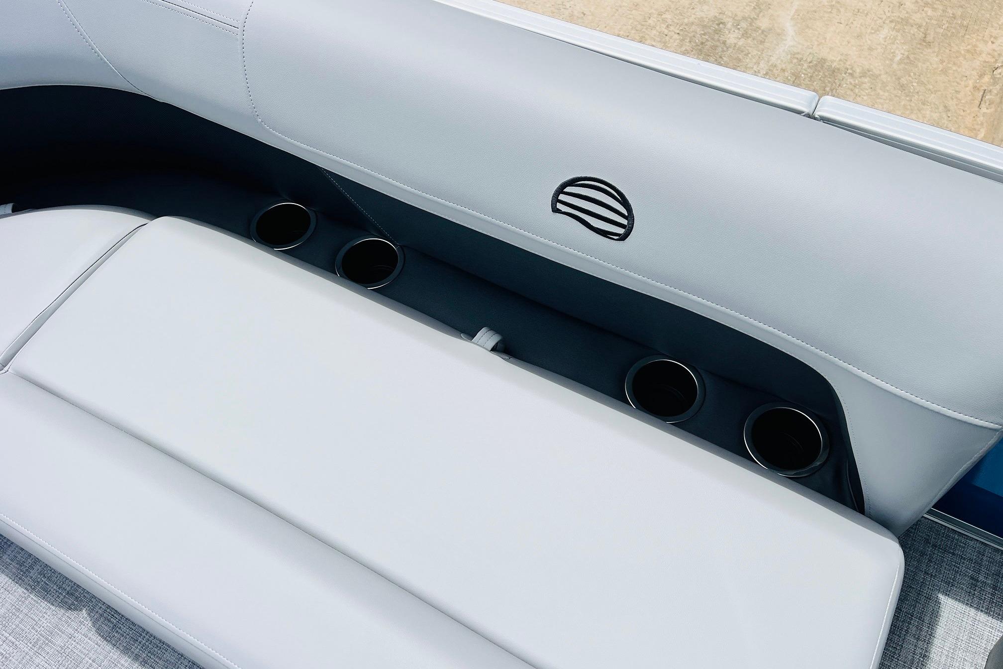 This year's PARTY BARGE gets some slick upgrades. Extra cupholders and storage built into the lounge backrests and improved handles make keeping your supplies at hand easier than ever. A new driver console design creates extra style. The boarding ladder has wider, more ergonomic steps. Crank up the soundtrack of the summer with the standard Bluetooth-capable Wet Sounds stereo and pull up the 7' bimini top to party in the shade when the sun is high. Find your corner of the lake and relax in one of the three corner lounges.Memories come easy in boats like the PARTY BARGE 16 DLX. Start making yours this summer!
