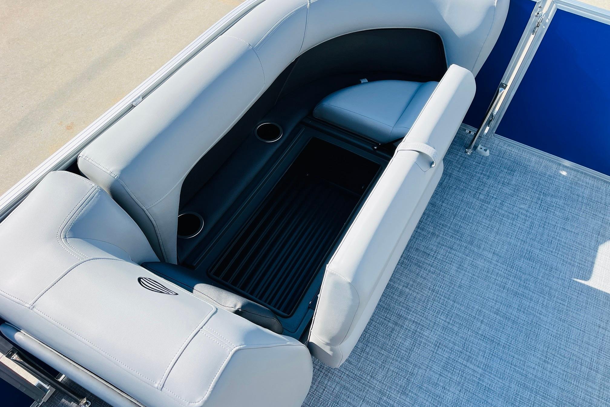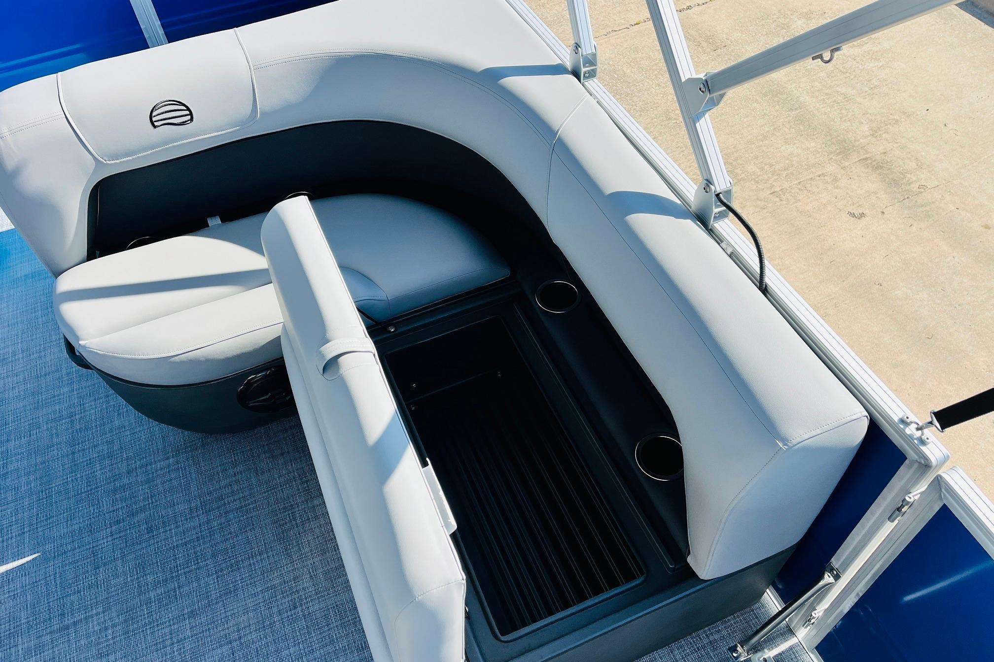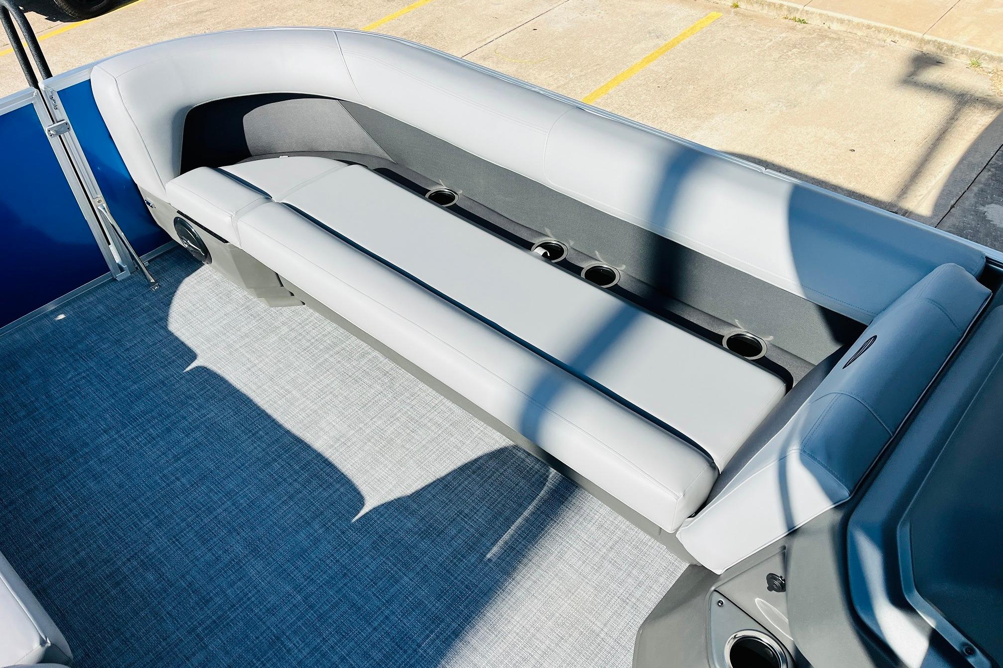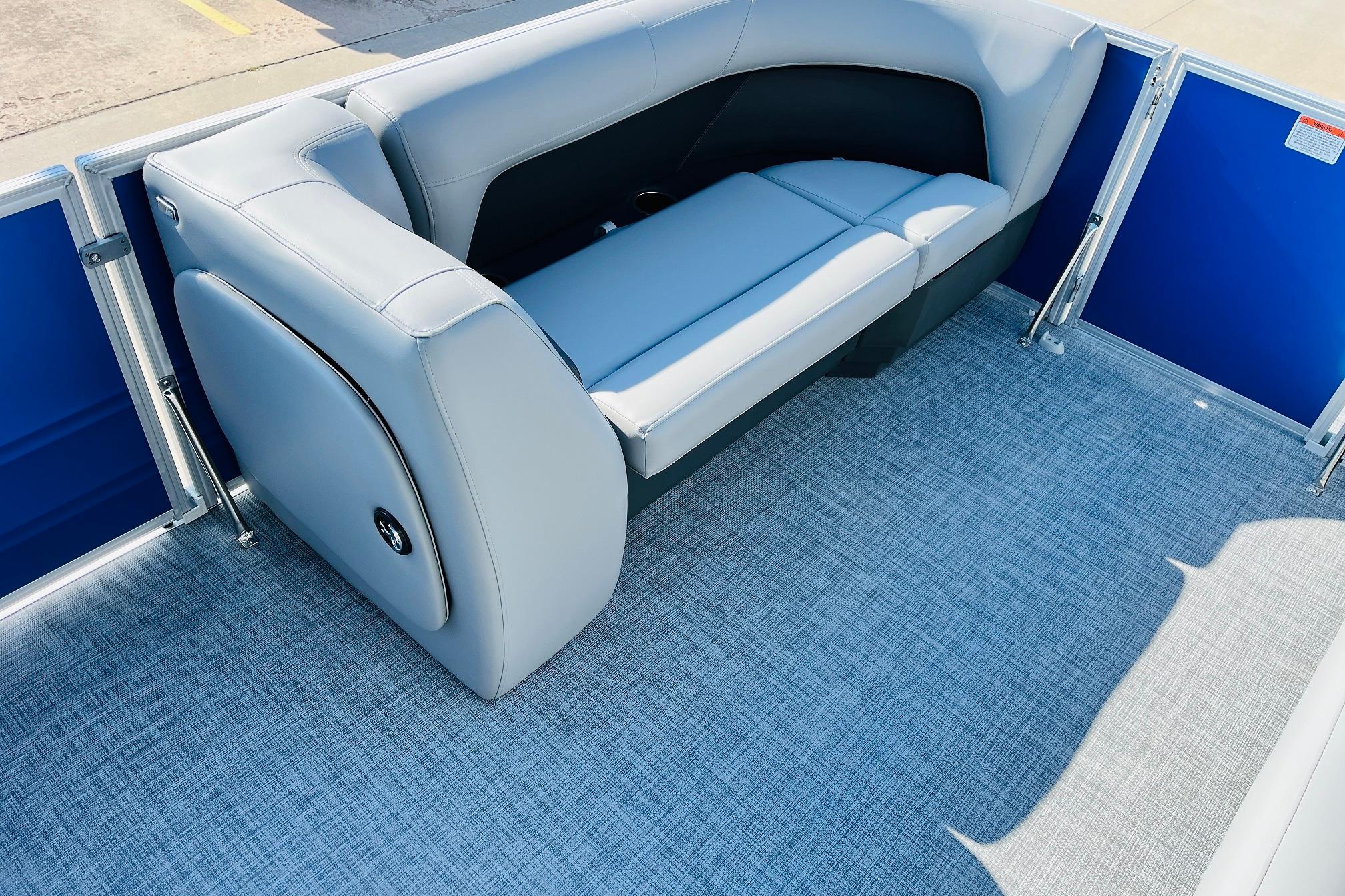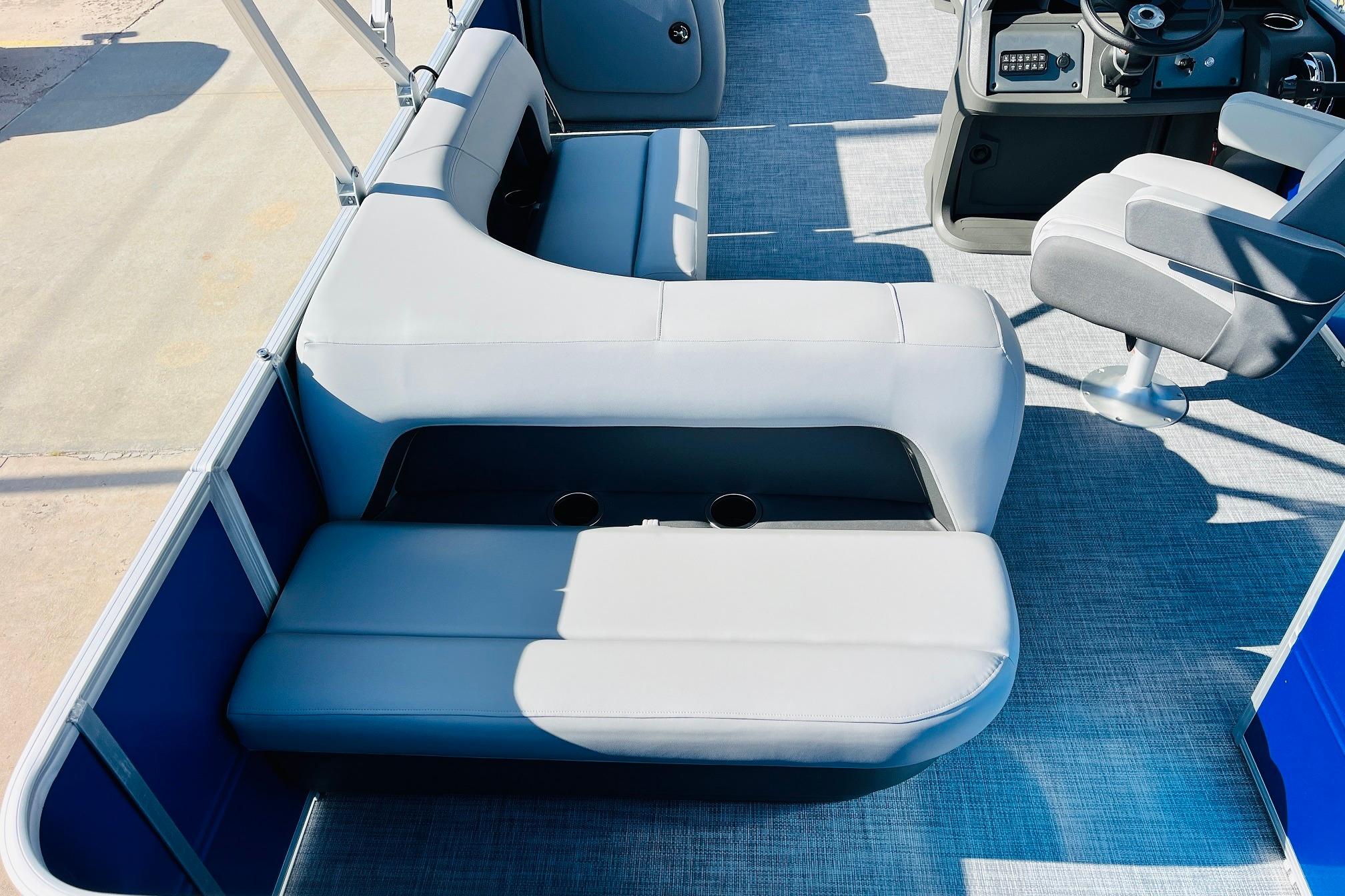 The 2026 model year brings some exciting changes to the 18 DLX. The lounge now features open storage compartments with extra cupholders built into the backrest. This ingenious use of space adds more than six cubic feet of extra storage space to the boat. The captain also gets a new console design with all the stops. The 17' 8" deck gives your crew three lounges and a rear-facing bench to relax in. Each lounge sports hidden compartments that secure all your supplies. The rear boarding platform features a new, wider telescoping boarding ladder with grab rails.Whether youre taking the kids out for fun, or you and your buddies are headed to the party, the PARTY BARGE 18 DLX is always game!