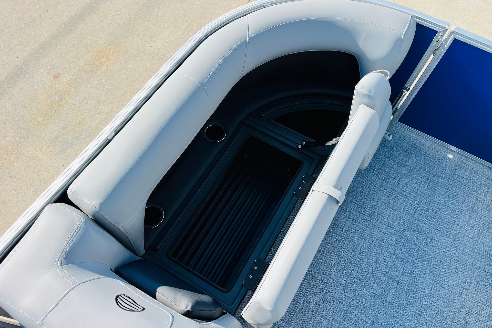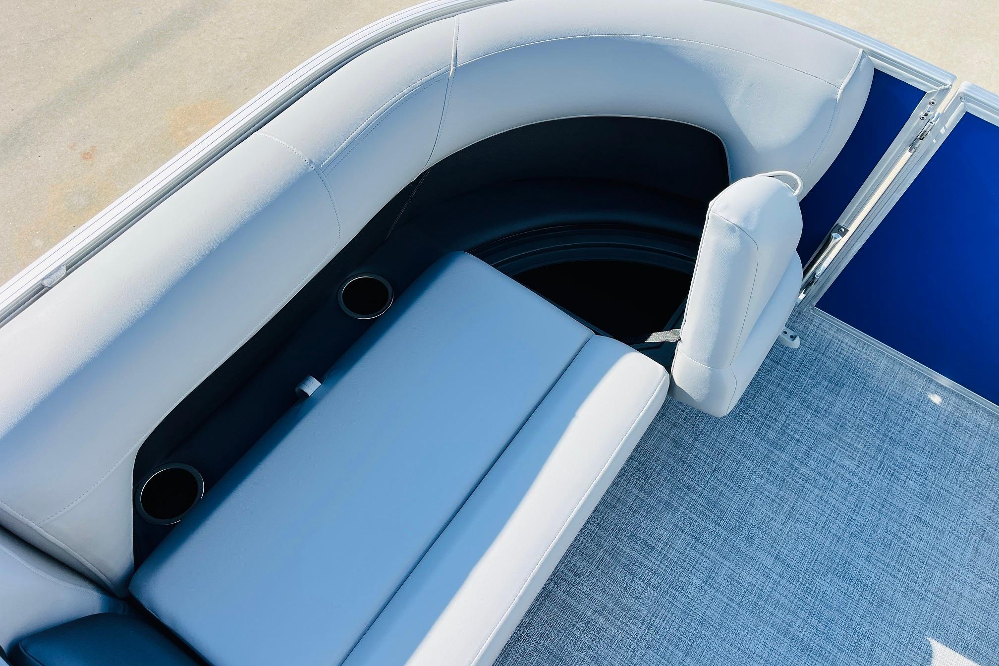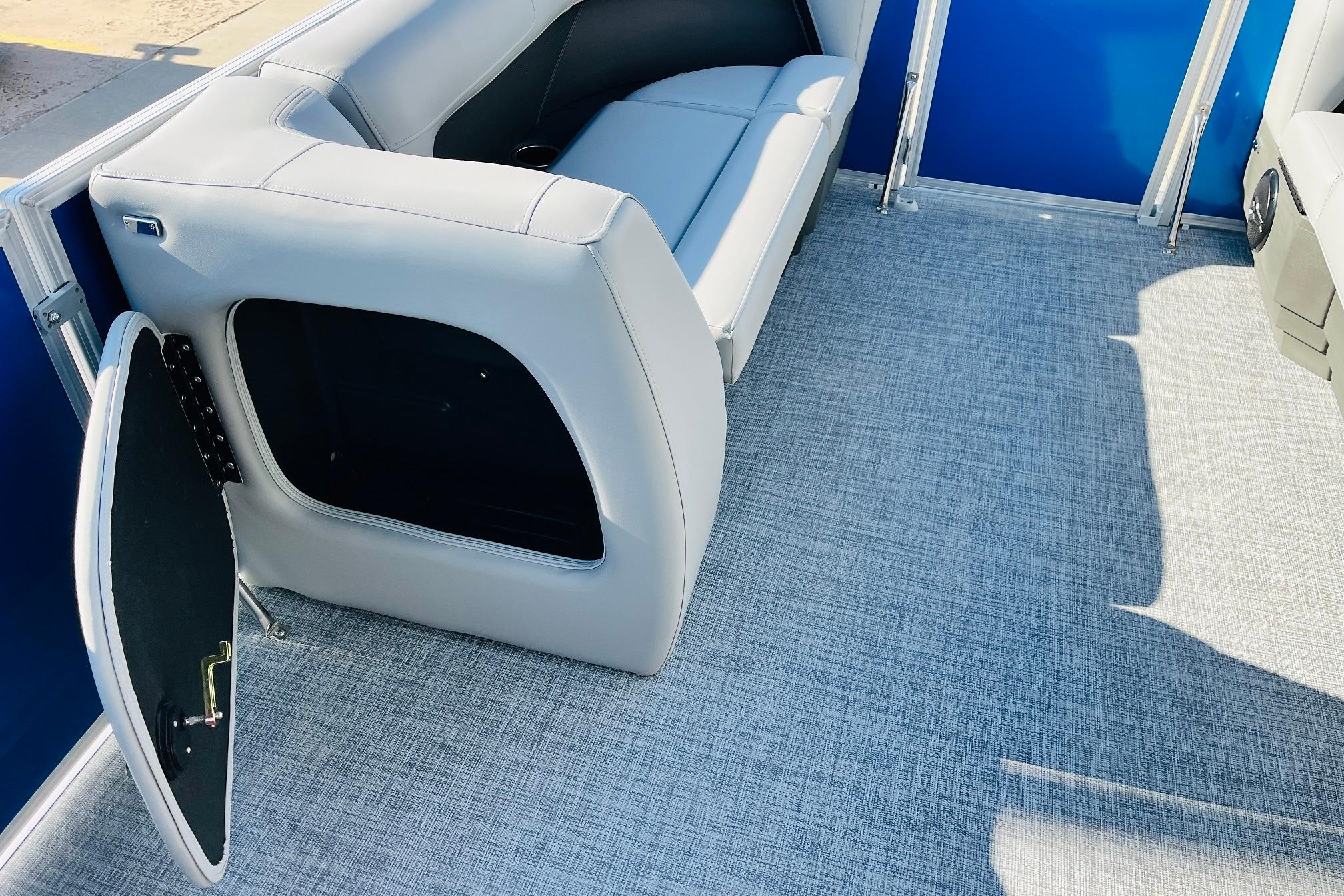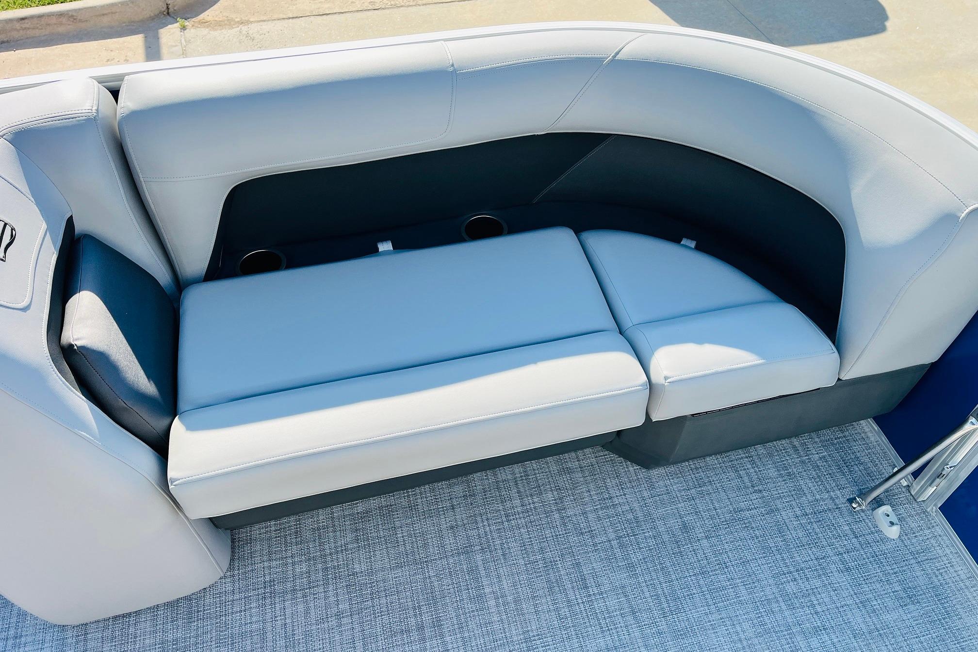 The 2026 model year brings some exciting changes to the 18 DLX. The lounge now features open storage compartments with extra cupholders built into the backrest. This ingenious use of space adds more than six cubic feet of extra storage space to the boat. The captain also gets a new console design with all the stops. The 17' 8" deck gives your crew three lounges and a rear-facing bench to relax in. Each lounge sports hidden compartments that secure all your supplies. The rear boarding platform features a new, wider telescoping boarding ladder with grab rails.Whether youre taking the kids out for fun, or you and your buddies are headed to the party, the PARTY BARGE 18 DLX is always game!