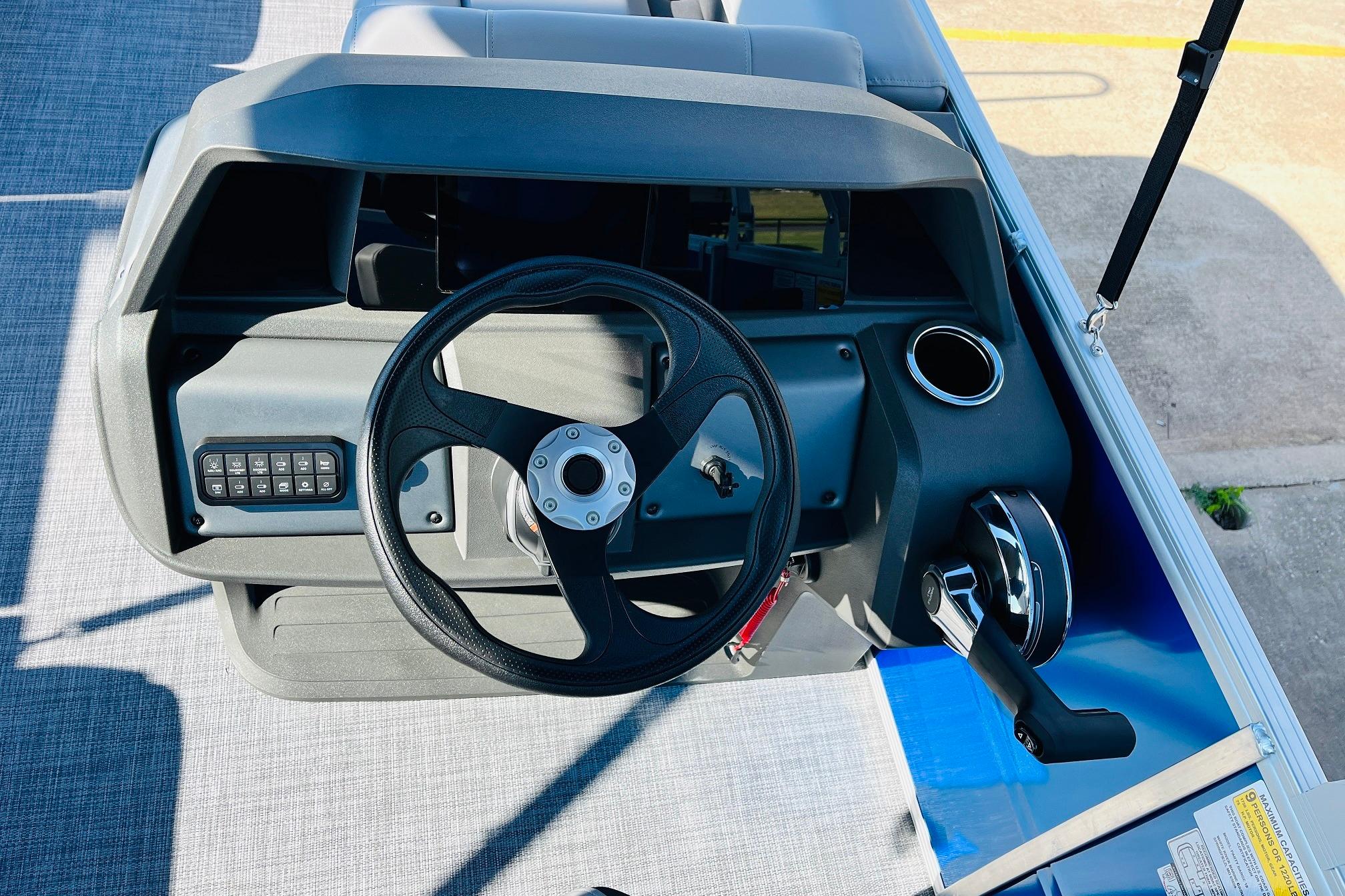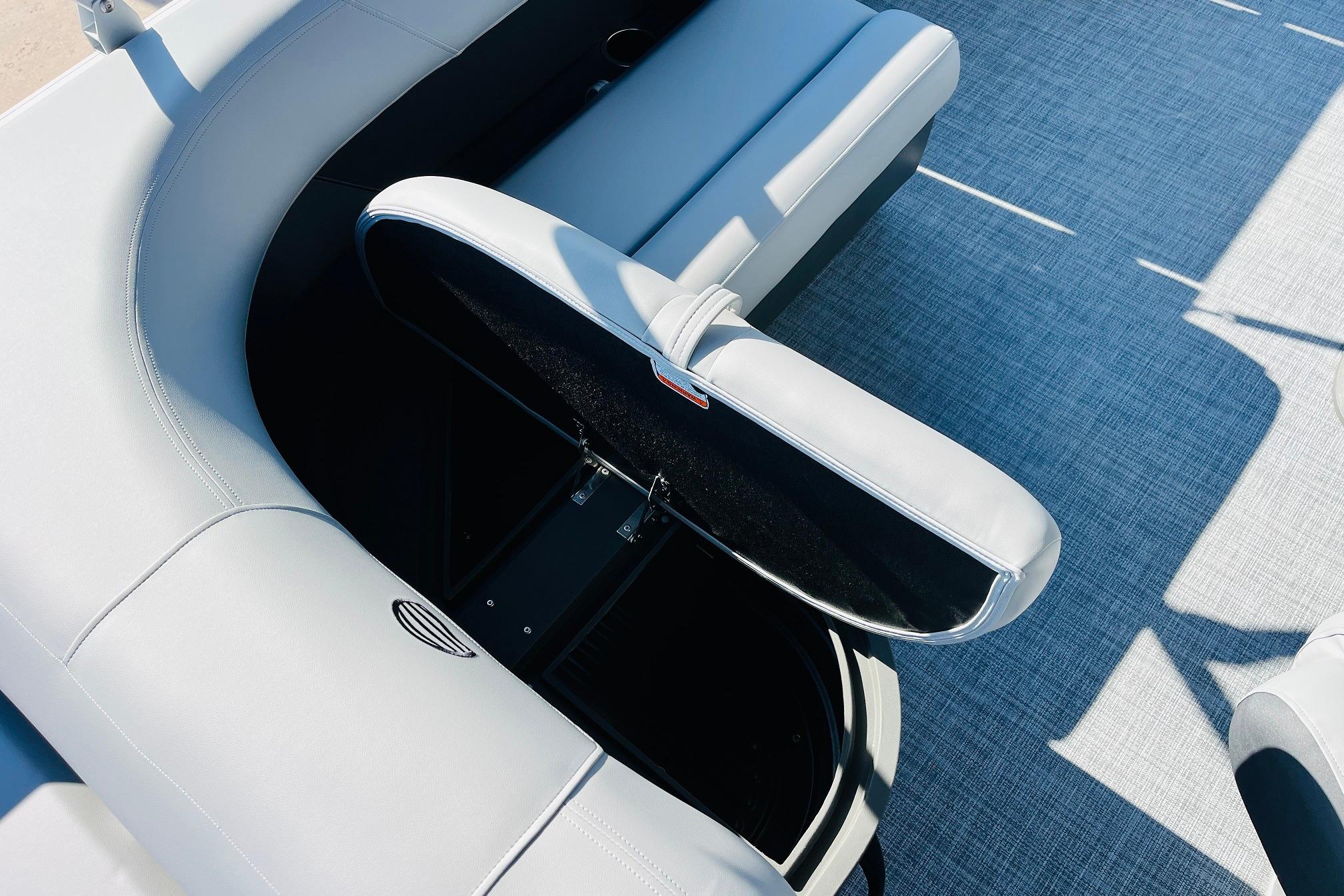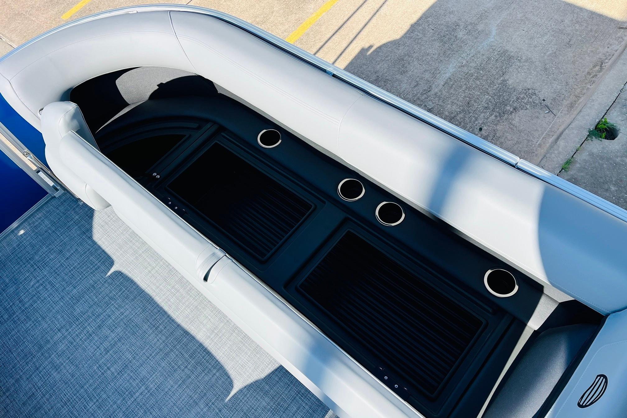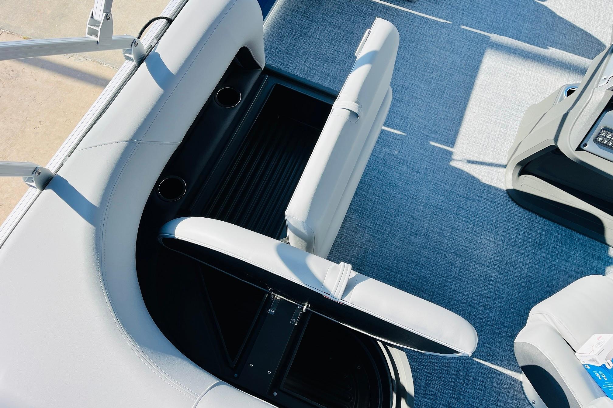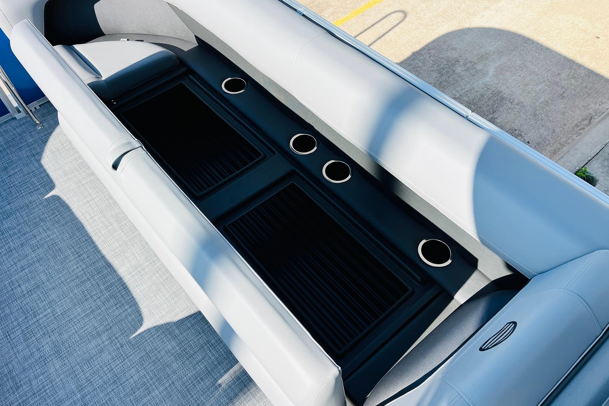 The 2026 model year brings some exciting changes to the 18 DLX. The lounge now features open storage compartments with extra cupholders built into the backrest. This ingenious use of space adds more than six cubic feet of extra storage space to the boat. The captain also gets a new console design with all the stops. The 17' 8" deck gives your crew three lounges and a rear-facing bench to relax in. Each lounge sports hidden compartments that secure all your supplies. The rear boarding platform features a new, wider telescoping boarding ladder with grab rails.Whether youre taking the kids out for fun, or you and your buddies are headed to the party, the PARTY BARGE 18 DLX is always game!