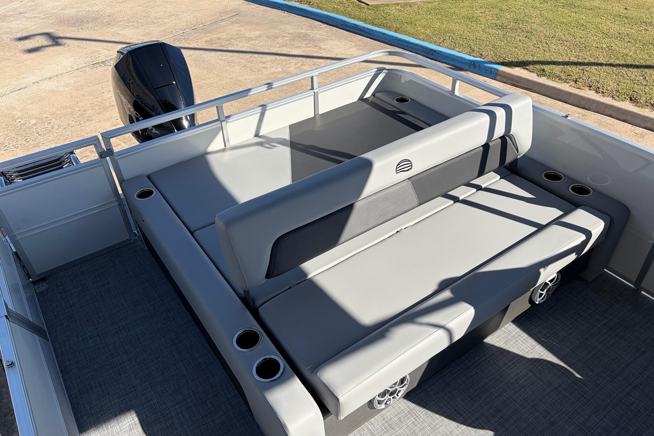 The biggest difference between the models is the RF's rear-facing, double-wide lounge thats big enough for two people to relax on. The 2026 model year adds some new features, including a redesigned interior. The lounges have clever backrest cut-outs that allow you to keep extra supplies and large bottles secure and within easy reach.