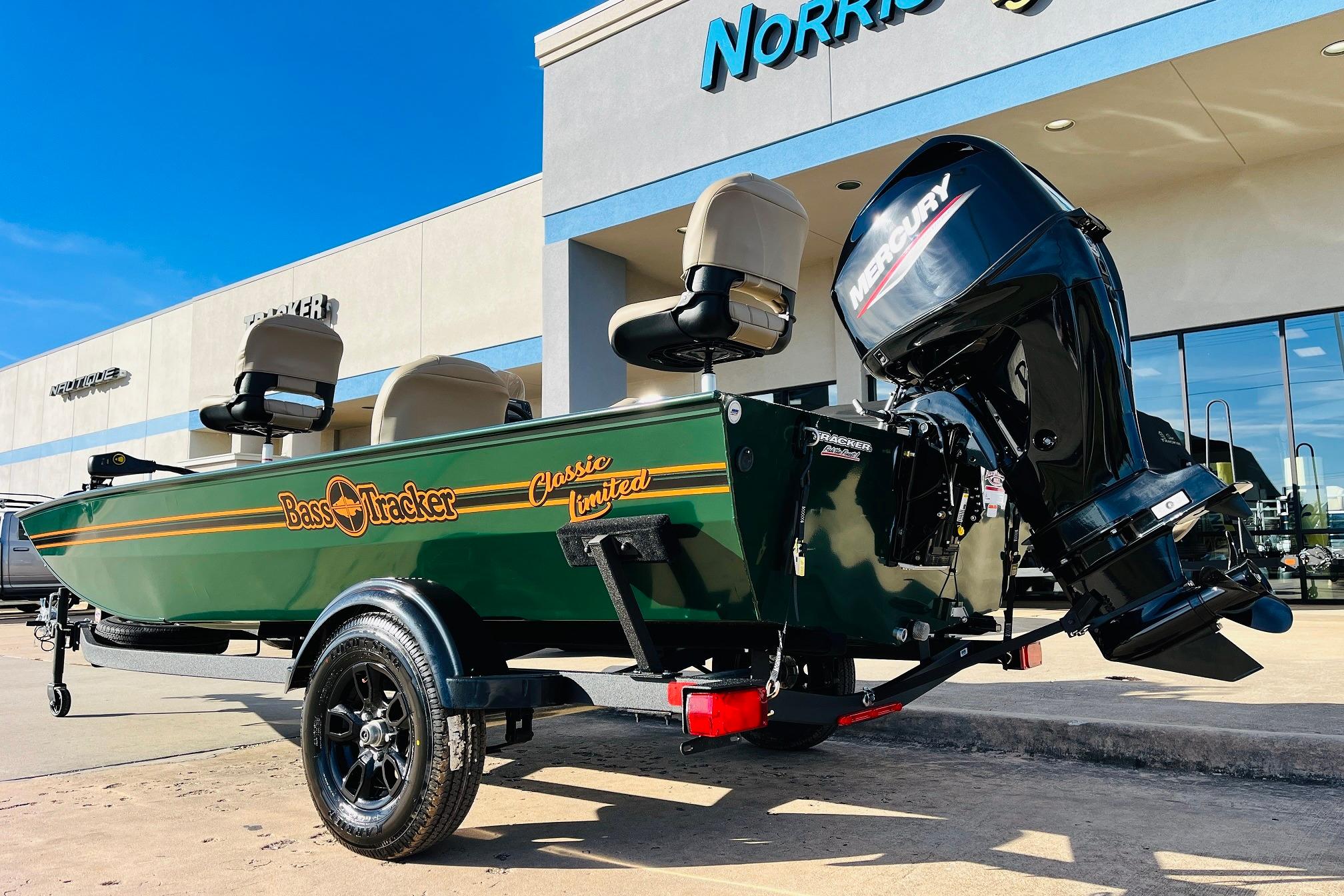 The all-new BASS TRACKER CLASSIC Limited edition adds rich, eye-catching features to the greatest value in fishing boats. These one-off models are specially equipped to set you off at the ramp and on the lake. An Army Green DIAMONDCOAT powdercoat finish makes a striking statement with proven durability and long-lasting shine and complements the 13 black trailer wheels that are wrapped in premium radial tireswith a matching spare. Inside, the BASS TRACKER CLASSIC Limited has an upgraded fishing feature set including a Lowrance Hook5 Reveal color GPS fishfinder. Rounding out this one-of-a-kind package are Limited Edition floor mats, decals, and a custom deck stripe. BASS TRACKER is all about providing industry-leading value to anglers and families, and with the introduction of the all-new BASS TRACKER CLASSIC Limited, you not only get unmatched value, but a unique feature set thats certain to be an instant classic.